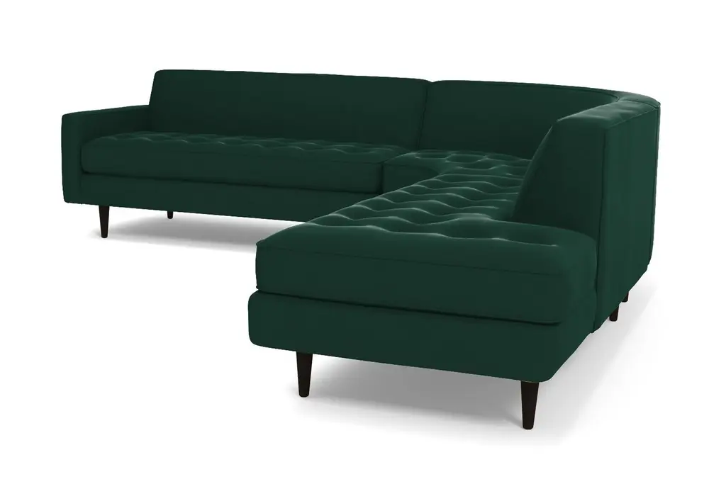 The Monroe 3-Piece Velvet Sectional Sofa brings Old Hollywood glamour to your modern décor. With sinuous curves and sumptuous velvet upholstery, this piece elevates classic design the way Marilyn Monroe elevated the film industry. Whether you’re looking for a modern velvet sectional to define your open concept floorplan or you need three pieces that work separately, the Monroe fits like a custom-sewn gown. Choose your hue from our velvet Performance Fabrics for a bold pop of color or understated elegance. We’ll send you free velvet fabric swatches so you can make sure your choice adds the right attitude to your space. Whichever way you go, the tufted seat cushions and tight, sleek back of this velvet couch sectional level up the luxurious look and feel of easy-care velvet. The Monroe 3-Piece Velvet Sectional Sofa is made in the U.S. with a solid wood frame, eco-friendly construction and 2.0-density foam seat cushions. We ship it for free, directly to your home, and the frame and workmanship are covered by the Apt2B limited lifetime warranty.
