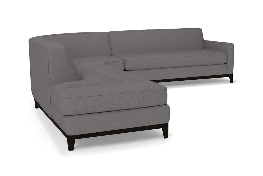 The Monroe Drive Collection is a modern update of our show-stopping Monroe Collection. The same eye-catching Mid Century Modern design details that defined the Monroe are still on display, but now with the addition of a stunning, solid wood base. The sophisticated button-tufted cushions and sleek tight back make The Monroe Drive look like it came straight from a classic Hollywood film set. The contemporary base creates a handsome, formal profile that allows the Monroe Drive to feel right at home in a variety of different decor styles. Available in your custom choice of our kid friendly and pet friendly fabrics, the Monroe Drive is perfect for your family home or your sophisticated apartment.