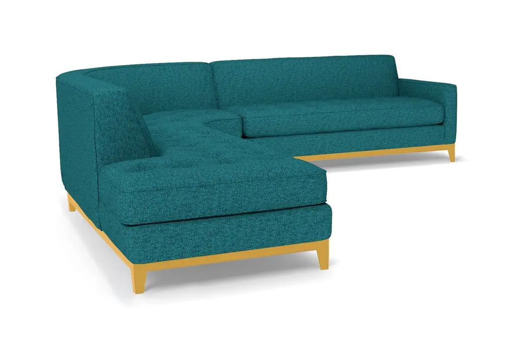 The Monroe Drive Collection is a modern update of our show-stopping Monroe Collection. The same eye-catching Mid Century Modern design details that defined the Monroe are still on display, but now with the addition of a stunning, solid wood base. The sophisticated button-tufted cushions and sleek tight back make The Monroe Drive look like it came straight from a classic Hollywood film set. The contemporary base creates a handsome, formal profile that allows the Monroe Drive to feel right at home in a variety of different decor styles. Available in your custom choice of our kid friendly and pet friendly fabrics, the Monroe Drive is perfect for your family home or your sophisticated apartment.