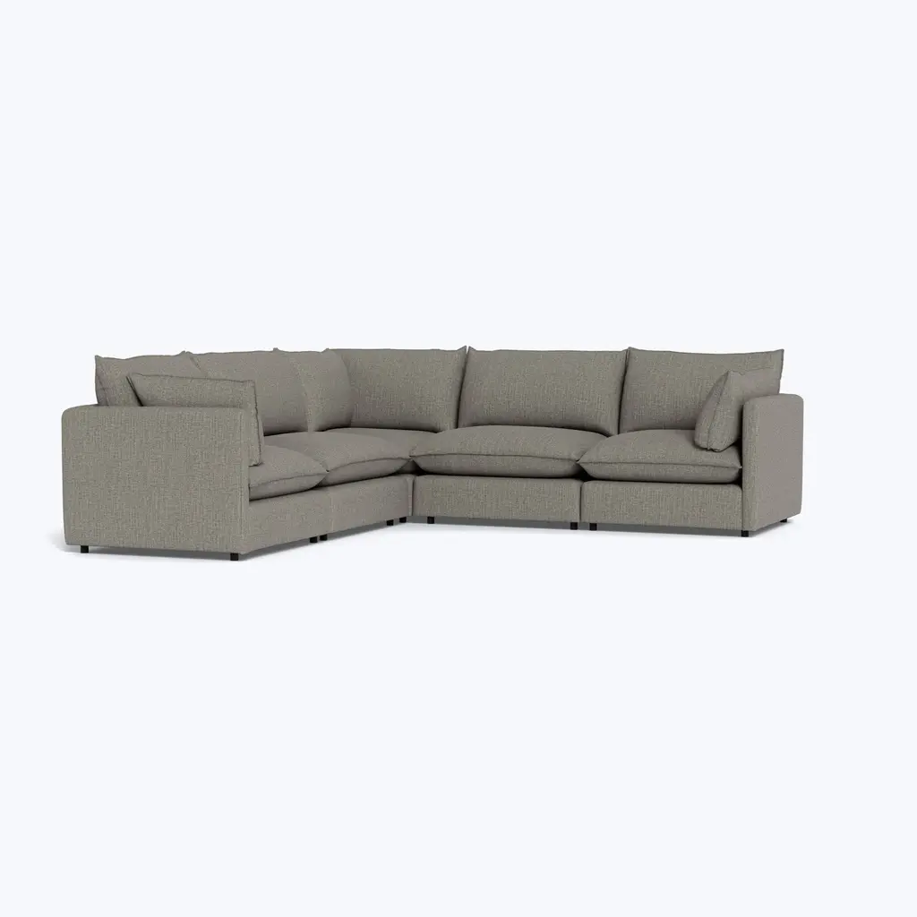 The Montauk Sectional, exclusively from ABC Carpet & Home, is a customer favorite that embodies the essence of coastal living and luxurious comfort. Featuring a modular design, this five-piece sectional includes a left arm facing chair, right arm facing chair, two armless pieces, and a corner to seamlessly connect it all. Its flexibility allows you to arrange the pieces to fit both small and expansive living spaces, making it the perfect choice for any home. Whether you're designing a cozy nook or a spacious family room, the Montauk Sectional adapts to your needs, allowing you to create your ideal living space. Crafted with a sustainably sourced Goodwood frame, the Montauk Sectional is as eco-conscious as it is stylish. The cushion cores are made with eco-friendly foam, partially derived from sustainable, plant-based materials, and surrounded by a plush blend of feather and down. This thoughtful combination results in cloud-like comfort, where you can unwind and sink into the sectional’s inviting seats. Its high back provides ample support, allowing you to rest your head and fully relax. The floating base adds a contemporary, airy feel that enhances the overall design. The Montauk’s plush seating and modular design make it an essential addition to any home, with a flange detail that adds an elegant finishing touch. To keep your sectional looking its best, simply fluff and rotate the pillows—effortless maintenance that ensures it remains company-ready at all times. With over 80 + custom fabric options, including cottons, linens, blends, and performance textiles, you can tailor the Montauk to your specific style. Choose from our in-stock fabrics or explore the extensive range of custom fabrics to design a sectional that perfectly complements your space. And if you need assistance, visit us in-store to work with our design specialists, who can help you bring your vision to life. Handmade in the USA, the Montauk Sectional is built to last. Other pieces in the Montauk collection include the 81" sofa, 93" sofa, lounge chair, ottoman, and sleeper, offering endless possibilities for creating a coordinated and luxurious living environment.