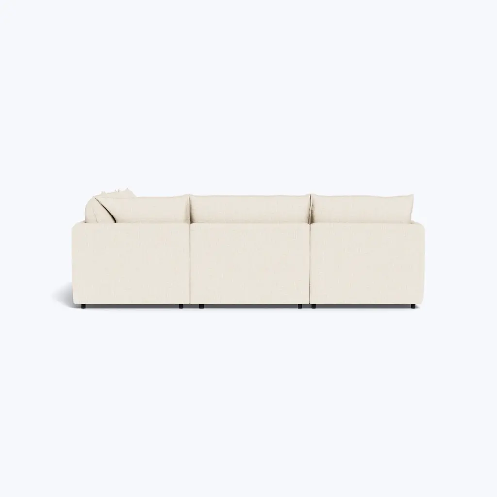 The Montauk Sectional, exclusively from ABC Carpet & Home, is a customer favorite that embodies the essence of coastal living and luxurious comfort. Featuring a modular design, this five-piece sectional includes a left arm facing chair, right arm facing chair, two armless pieces, and a corner to seamlessly connect it all. Its flexibility allows you to arrange the pieces to fit both small and expansive living spaces, making it the perfect choice for any home. Whether you're designing a cozy nook or a spacious family room, the Montauk Sectional adapts to your needs, allowing you to create your ideal living space. Crafted with a sustainably sourced Goodwood frame, the Montauk Sectional is as eco-conscious as it is stylish. The cushion cores are made with eco-friendly foam, partially derived from sustainable, plant-based materials, and surrounded by a plush blend of feather and down. This thoughtful combination results in cloud-like comfort, where you can unwind and sink into the sectional’s inviting seats. Its high back provides ample support, allowing you to rest your head and fully relax. The floating base adds a contemporary, airy feel that enhances the overall design. The Montauk’s plush seating and modular design make it an essential addition to any home, with a flange detail that adds an elegant finishing touch. To keep your sectional looking its best, simply fluff and rotate the pillows—effortless maintenance that ensures it remains company-ready at all times. With over 80 + custom fabric options, including cottons, linens, blends, and performance textiles, you can tailor the Montauk to your specific style. Choose from our in-stock fabrics or explore the extensive range of custom fabrics to design a sectional that perfectly complements your space. And if you need assistance, visit us in-store to work with our design specialists, who can help you bring your vision to life. Handmade in the USA, the Montauk Sectional is built to last. Other pieces in the Montauk collection include the 81" sofa, 93" sofa, lounge chair, ottoman, and sleeper, offering endless possibilities for creating a coordinated and luxurious living environment.