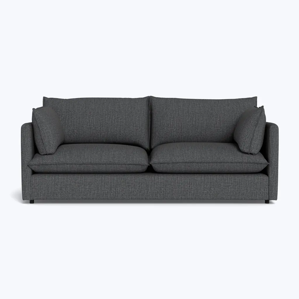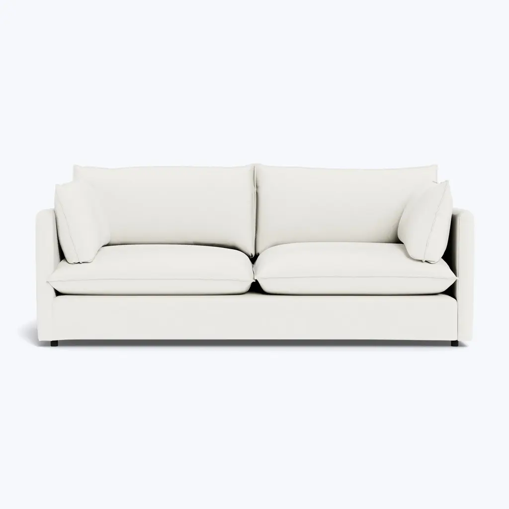 The Montauk Sofa, available in both 81" and 93" sizes, captures the essence of coastal living and luxurious comfort, exclusively from ABC Carpet & Home. Perfectly crafted for those who seek both style and relaxation, this sofa adapts to a variety of living spaces, whether you're furnishing a cozy apartment or a larger living room. Its flexible design makes it a versatile option for any setting, offering unmatched comfort paired with contemporary aesthetics.Built with a sustainably sourced Goodwood frame, the Montauk Sofa emphasizes eco-conscious craftsmanship while ensuring long-lasting durability. The cushion cores are made from eco-friendly foam, partially derived from sustainable, plant-based materials, and are surrounded by a plush blend of feather and down. This combination creates a cloud-like seating experience that encourages you to sink in and unwind. The high back provides optimal support, making it an ideal spot to rest and recharge after a long day.The Montauk’s soft, plush seating is elevated by its modern floating base, adding an airy and contemporary touch to your living space. Thoughtful flange detailing enhances the overall refined look, making it a standout centerpiece in your home. Keeping the Montauk sofa looking pristine is easy—simply fluff and rotate the pillows, and your sofa will remain guest-ready at all times.With over 80+ custom fabric options—including cottons, linens, blends, and performance textiles—the Montauk Sofa can be tailored to perfectly suit your personal style. You can opt for in-stock fabrics for faster availability, or explore the extensive range of custom fabrics to craft a sofa that harmonizes with your home’s decor. For personalized assistance, visit our store and collaborate with our design specialists to create the sofa of your dreams.Handmade in the USA, the Montauk Sofa is the epitome of luxury and craftsmanship. Available in 81" and 93" sizes, this sofa is ideal for a variety of living spaces. To complete the look, explore the other pieces in the Montauk collection, including the lounge chair, ottoman, sleeper, and modular sectional, allowing you to create a beautifully cohesive and inviting living area.