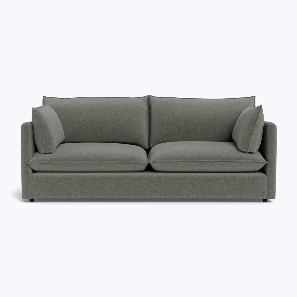 The Montauk Sofa, available in both 81" and 93" sizes, captures the essence of coastal living and luxurious comfort, exclusively from ABC Carpet & Home. Perfectly crafted for those who seek both style and relaxation, this sofa adapts to a variety of living spaces, whether you're furnishing a cozy apartment or a larger living room. Its flexible design makes it a versatile option for any setting, offering unmatched comfort paired with contemporary aesthetics.Built with a sustainably sourced Goodwood frame, the Montauk Sofa emphasizes eco-conscious craftsmanship while ensuring long-lasting durability. The cushion cores are made from eco-friendly foam, partially derived from sustainable, plant-based materials, and are surrounded by a plush blend of feather and down. This combination creates a cloud-like seating experience that encourages you to sink in and unwind. The high back provides optimal support, making it an ideal spot to rest and recharge after a long day.The Montauk’s soft, plush seating is elevated by its modern floating base, adding an airy and contemporary touch to your living space. Thoughtful flange detailing enhances the overall refined look, making it a standout centerpiece in your home. Keeping the Montauk sofa looking pristine is easy—simply fluff and rotate the pillows, and your sofa will remain guest-ready at all times.With over 80+ custom fabric options—including cottons, linens, blends, and performance textiles—the Montauk Sofa can be tailored to perfectly suit your personal style. You can opt for in-stock fabrics for faster availability, or explore the extensive range of custom fabrics to craft a sofa that harmonizes with your home’s decor. For personalized assistance, visit our store and collaborate with our design specialists to create the sofa of your dreams.Handmade in the USA, the Montauk Sofa is the epitome of luxury and craftsmanship. Available in 81" and 93" sizes, this sofa is ideal for a variety of living spaces. To complete the look, explore the other pieces in the Montauk collection, including the lounge chair, ottoman, sleeper, and modular sectional, allowing you to create a beautifully cohesive and inviting living area.