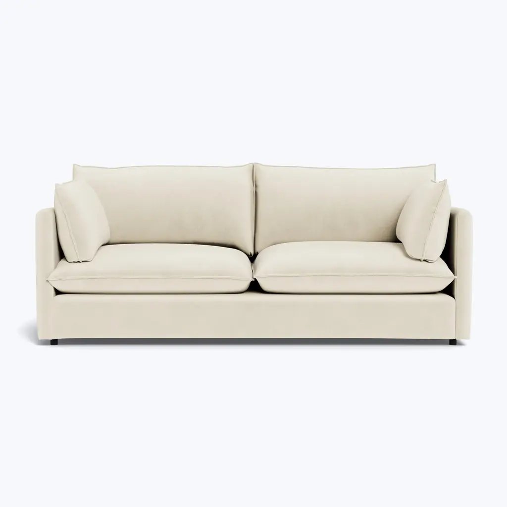 The Montauk Sofa, available in both 81" and 93" sizes, captures the essence of coastal living and luxurious comfort, exclusively from ABC Carpet & Home. Perfectly crafted for those who seek both style and relaxation, this sofa adapts to a variety of living spaces, whether you're furnishing a cozy apartment or a larger living room. Its flexible design makes it a versatile option for any setting, offering unmatched comfort paired with contemporary aesthetics.Built with a sustainably sourced Goodwood frame, the Montauk Sofa emphasizes eco-conscious craftsmanship while ensuring long-lasting durability. The cushion cores are made from eco-friendly foam, partially derived from sustainable, plant-based materials, and are surrounded by a plush blend of feather and down. This combination creates a cloud-like seating experience that encourages you to sink in and unwind. The high back provides optimal support, making it an ideal spot to rest and recharge after a long day.The Montauk’s soft, plush seating is elevated by its modern floating base, adding an airy and contemporary touch to your living space. Thoughtful flange detailing enhances the overall refined look, making it a standout centerpiece in your home. Keeping the Montauk sofa looking pristine is easy—simply fluff and rotate the pillows, and your sofa will remain guest-ready at all times.With over 80+ custom fabric options—including cottons, linens, blends, and performance textiles—the Montauk Sofa can be tailored to perfectly suit your personal style. You can opt for in-stock fabrics for faster availability, or explore the extensive range of custom fabrics to craft a sofa that harmonizes with your home’s decor. For personalized assistance, visit our store and collaborate with our design specialists to create the sofa of your dreams.Handmade in the USA, the Montauk Sofa is the epitome of luxury and craftsmanship. Available in 81" and 93" sizes, this sofa is ideal for a variety of living spaces. To complete the look, explore the other pieces in the Montauk collection, including the lounge chair, ottoman, sleeper, and modular sectional, allowing you to create a beautifully cohesive and inviting living area.