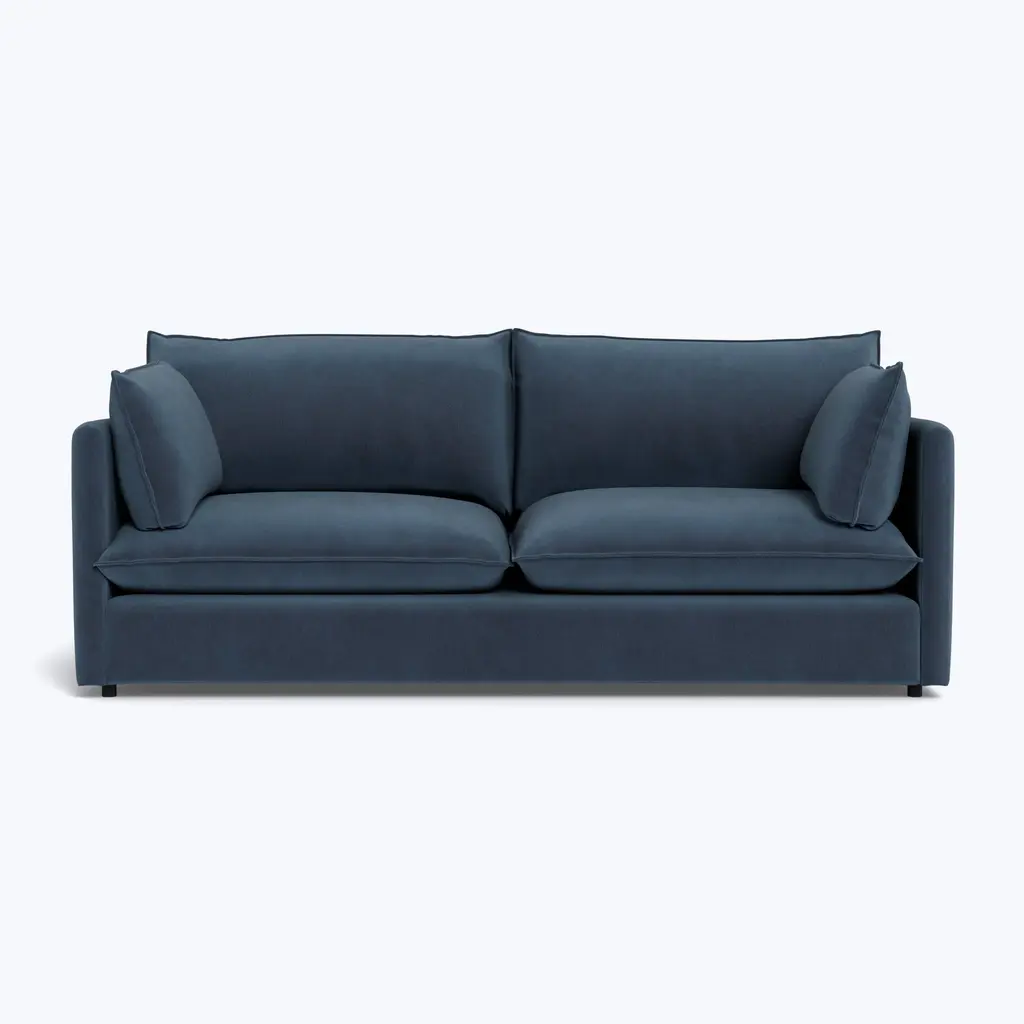 The Montauk Sofa, available in both 81" and 93" sizes, captures the essence of coastal living and luxurious comfort, exclusively from ABC Carpet & Home. Perfectly crafted for those who seek both style and relaxation, this sofa adapts to a variety of living spaces, whether you're furnishing a cozy apartment or a larger living room. Its flexible design makes it a versatile option for any setting, offering unmatched comfort paired with contemporary aesthetics.Built with a sustainably sourced Goodwood frame, the Montauk Sofa emphasizes eco-conscious craftsmanship while ensuring long-lasting durability. The cushion cores are made from eco-friendly foam, partially derived from sustainable, plant-based materials, and are surrounded by a plush blend of feather and down. This combination creates a cloud-like seating experience that encourages you to sink in and unwind. The high back provides optimal support, making it an ideal spot to rest and recharge after a long day.The Montauk’s soft, plush seating is elevated by its modern floating base, adding an airy and contemporary touch to your living space. Thoughtful flange detailing enhances the overall refined look, making it a standout centerpiece in your home. Keeping the Montauk sofa looking pristine is easy—simply fluff and rotate the pillows, and your sofa will remain guest-ready at all times.With over 80+ custom fabric options—including cottons, linens, blends, and performance textiles—the Montauk Sofa can be tailored to perfectly suit your personal style. You can opt for in-stock fabrics for faster availability, or explore the extensive range of custom fabrics to craft a sofa that harmonizes with your home’s decor. For personalized assistance, visit our store and collaborate with our design specialists to create the sofa of your dreams.Handmade in the USA, the Montauk Sofa is the epitome of luxury and craftsmanship. Available in 81" and 93" sizes, this sofa is ideal for a variety of living spaces. To complete the look, explore the other pieces in the Montauk collection, including the lounge chair, ottoman, sleeper, and modular sectional, allowing you to create a beautifully cohesive and inviting living area.