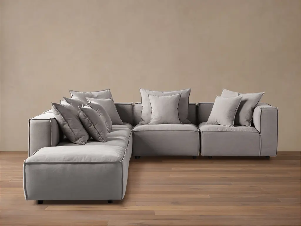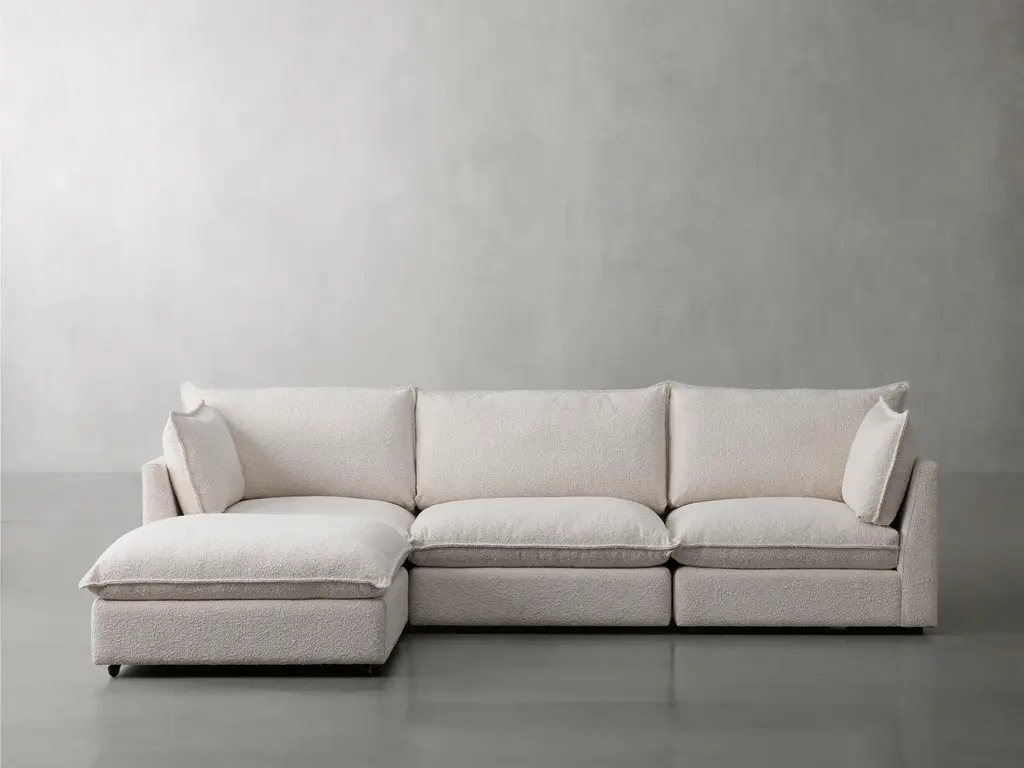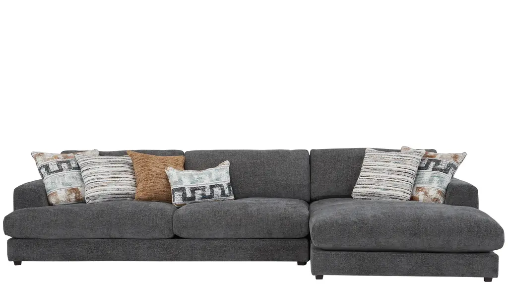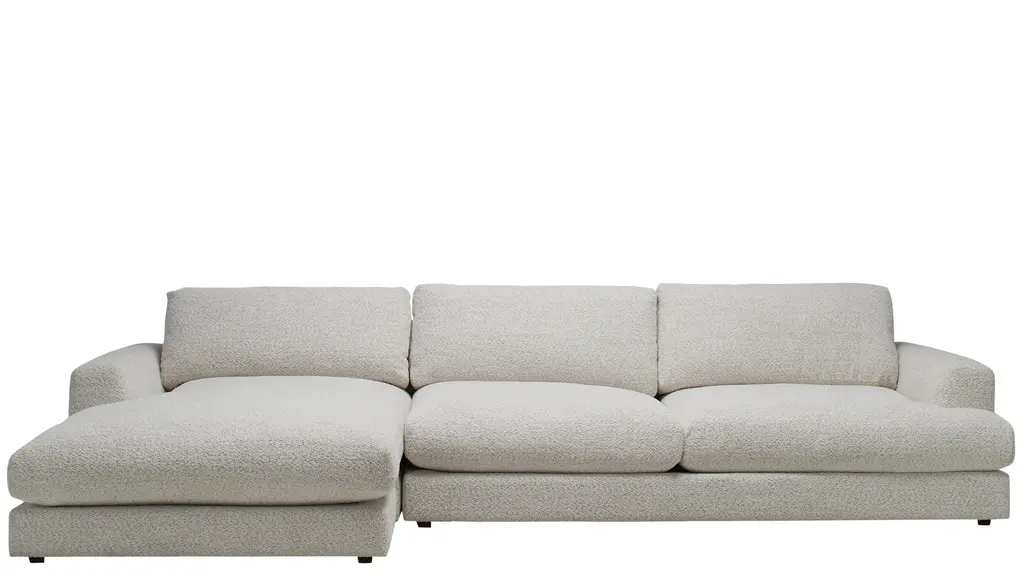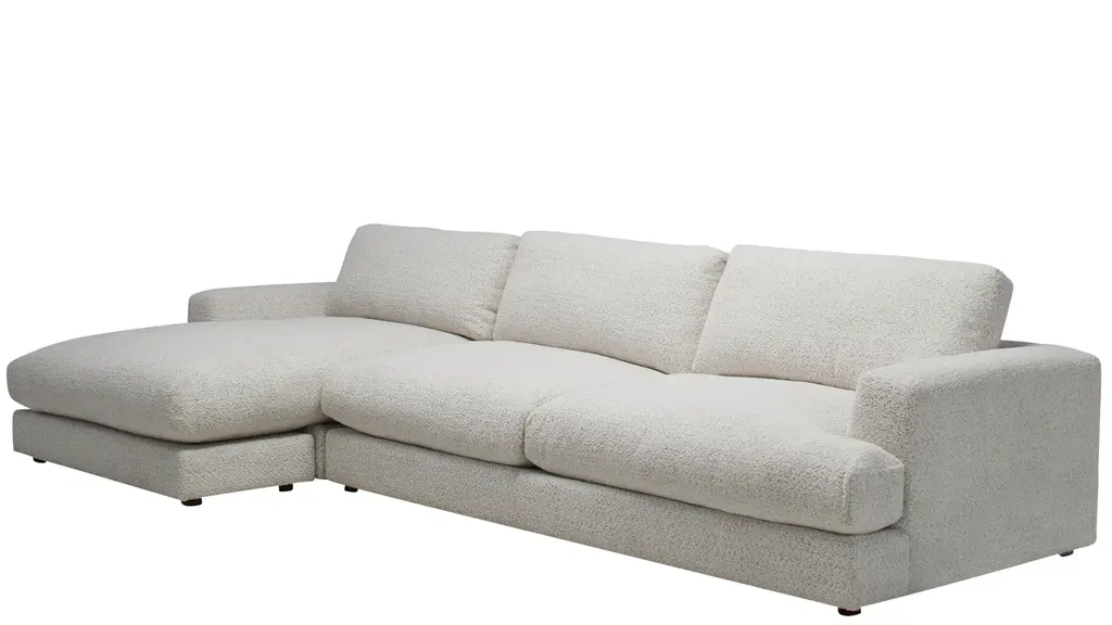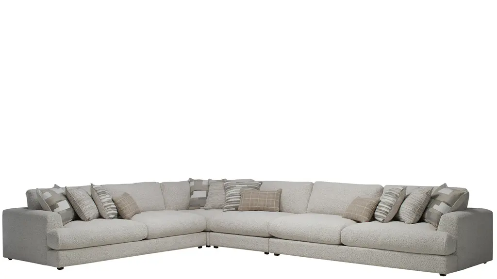 With the generous proportions and plush seating of the Montecito sectional from Drew & Jonathan, you can invite a crowd to join you for movie nights, parties, lounging and more, and rest assured that everyone will find their own perfect perch. The 5-layer cushioning features a feather down blend for a superior seating experience. Soft ivory chenille and wide track arms make this a natural choice for a casual comfort oasis.