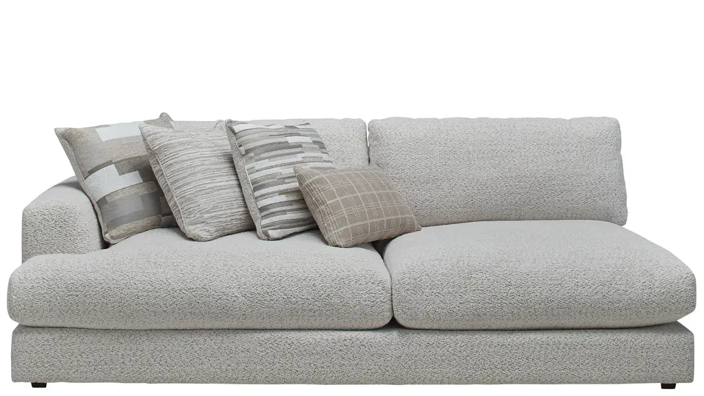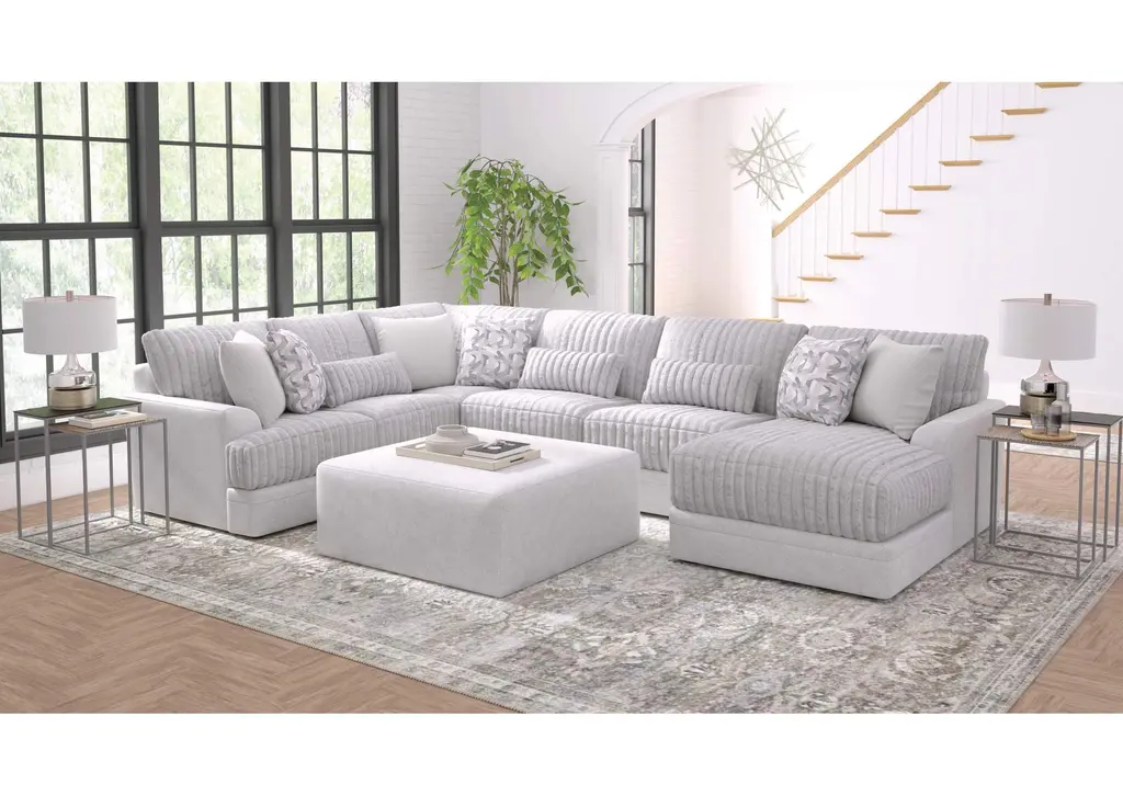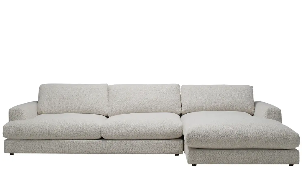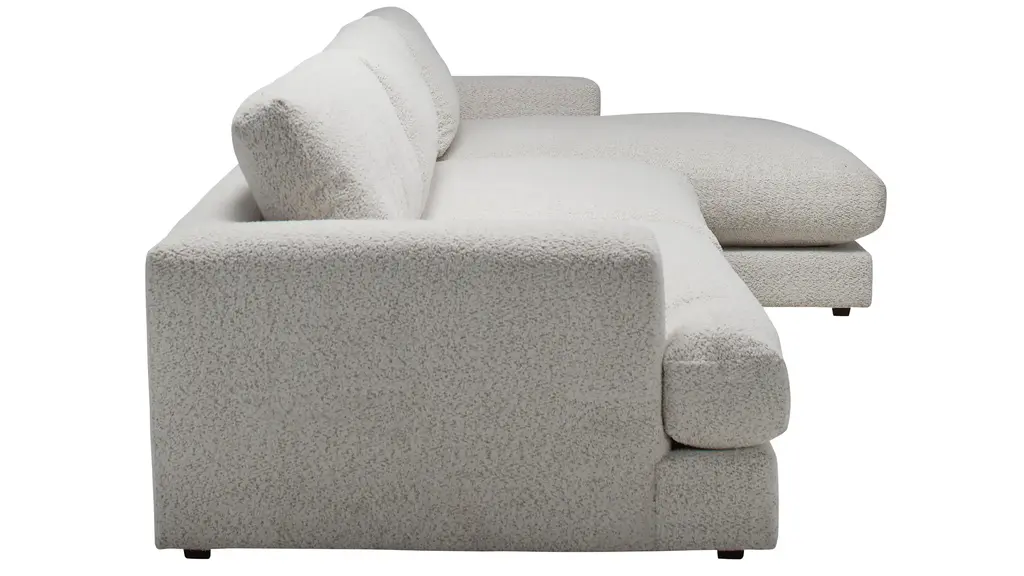 With the generous proportions and plush seating of the Montecito sectional from Drew & Jonathan, you can invite a crowd to join you for movie nights, parties, lounging and more, and rest assured that everyone will find their own perfect perch. The 5-layer cushioning features a feather down blend for a superior seating experience. Soft ivory chenille and wide track arms make this a natural choice for a casual comfort oasis.