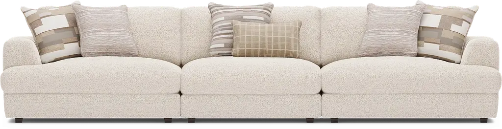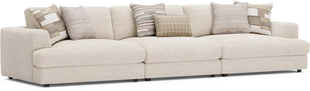 A cozy invitation to unwind and enjoy a warm, comfortable embrace with a dose of casual cool is just the beginning when it comes to the Drew & Jonathan Montecito sectional. A versatile centerpiece with family-friendly style, this laid-back contemporary set offers seat cushions with a plush custom blend of feathers, fiber and down surrounding a supportive foam core for comfort that’s soft yet structured, all upholstered in striking white chenille. Oversized wedge arms and extra-wide seats complete the look with plenty of room to spare. Upholstery: 100% Polyester.