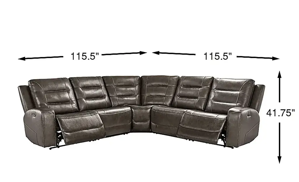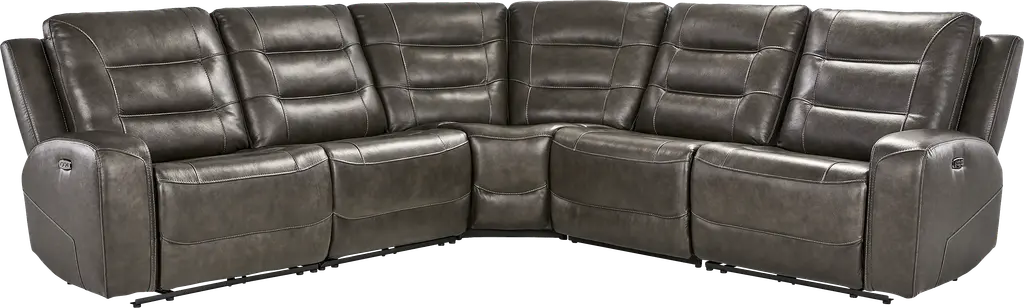 Montero Charcoal Leather 5 Pc Dual Power Reclining Sectional