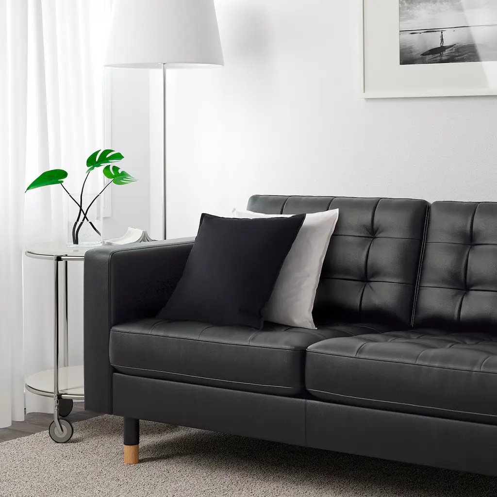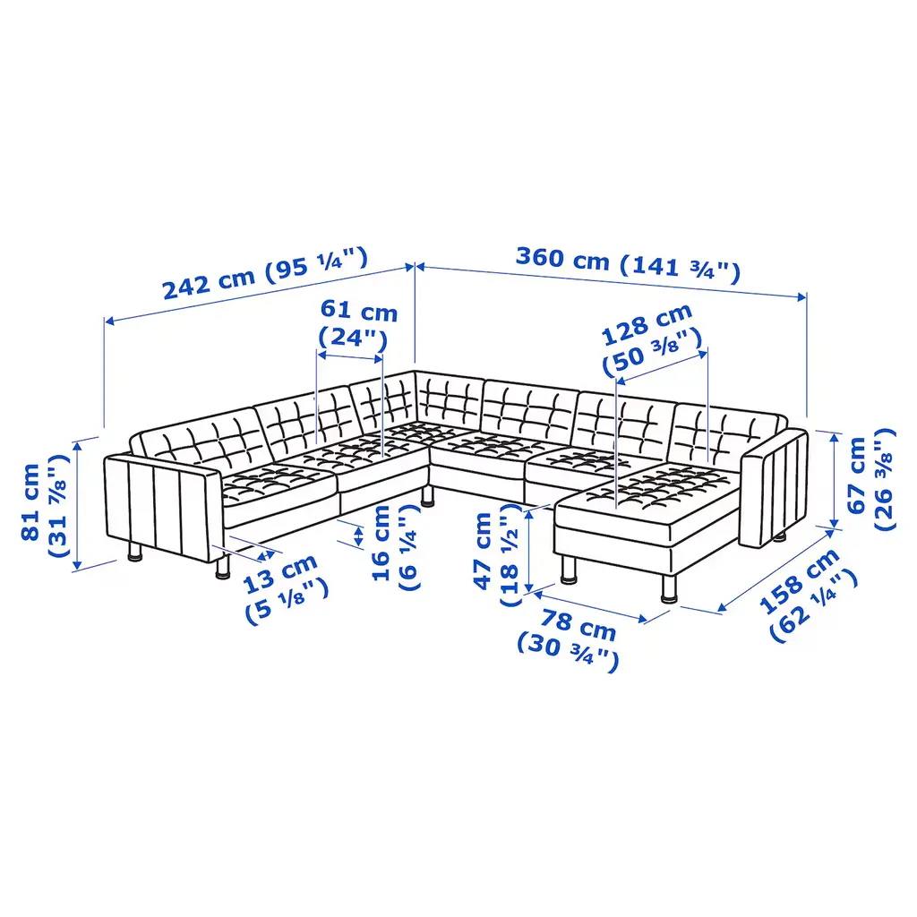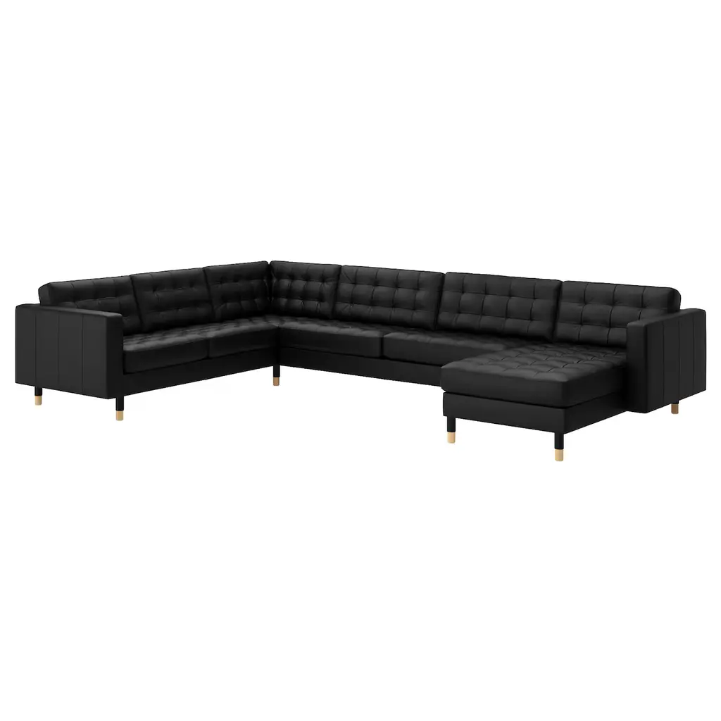 MORABO Sectional 6-seat crn/chaise - Grann/Bomstad black/wood. Seat cushions filled with high-resilience foam and polyester fiber wadding provide great seating comfort. These wooden legs give MORABO sofa and armchair a warm and natural look. Removable armrests make it easy to add on a chaise lounge.