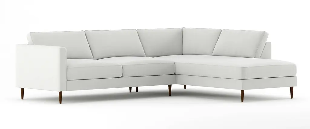 Mota Bumper Sectionals's deep frame delivers all the comfy lounge vibes with extra room to curl right up. Whether you're putting together a space that's tailored or more relaxed in feel, these sleek lines will fit right in. Crafted by hand in the USA to your specifications: pick your favorite filling, fabric, dimensions, and leg style.