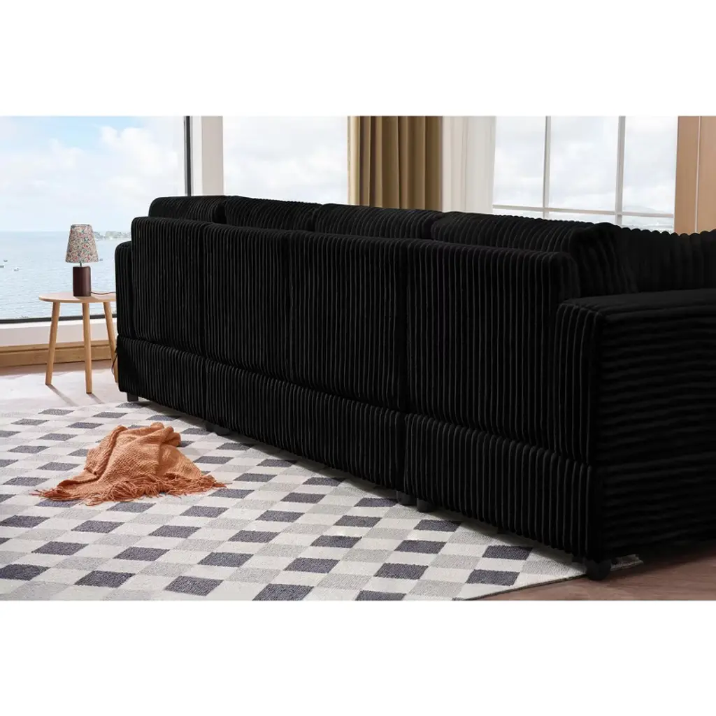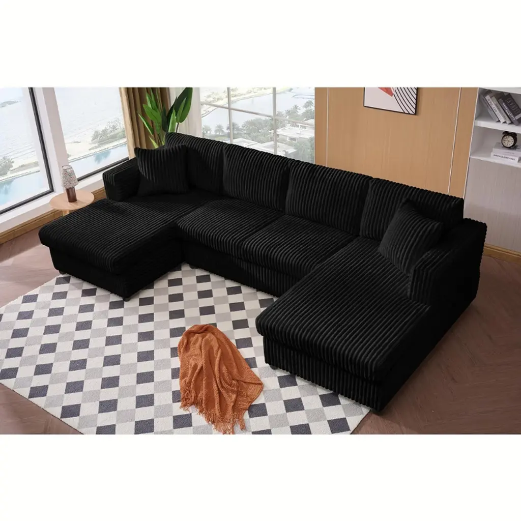 Myinda 4 Seat U Sectional Couch, 110'' W Corduroy Sofa With Double Chaises