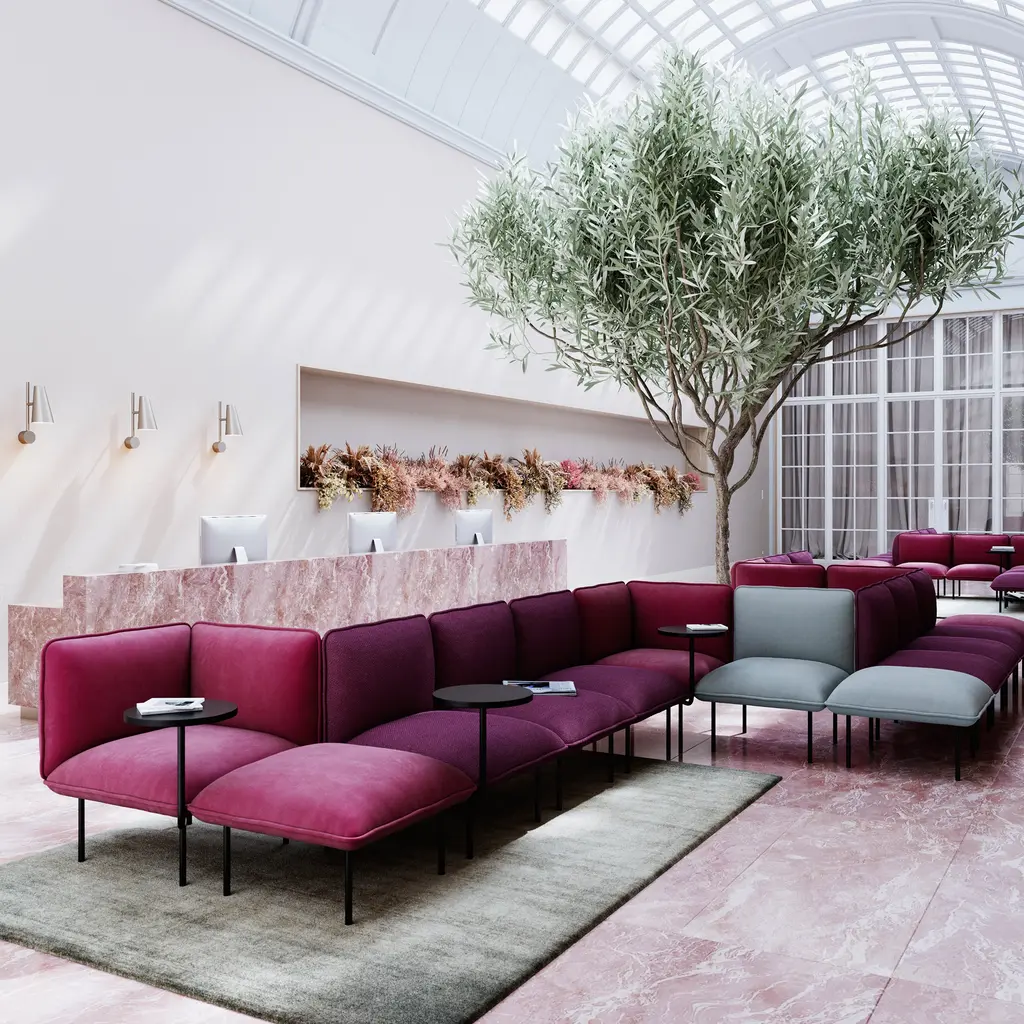 Woud adds an essential corner unit for configuring sectional seating—with an optional table for setting down a drink or reading matter—in its Nakki Lobby range. Finnish designer Mika Tolvanen's comfort-inducing proportions in a choice of upholstery materials make the adaptable modular sofa highly suitable in hospitality spaces, hotels, and coworking setups.