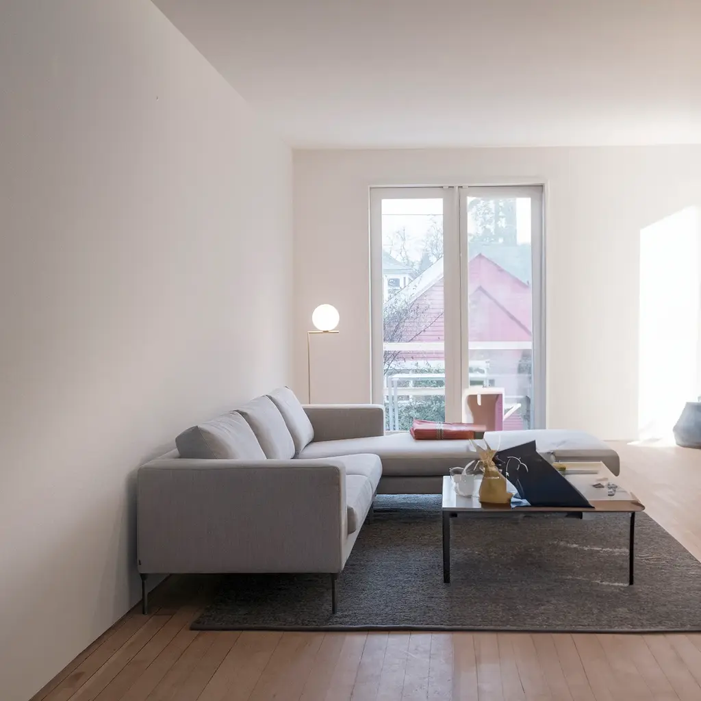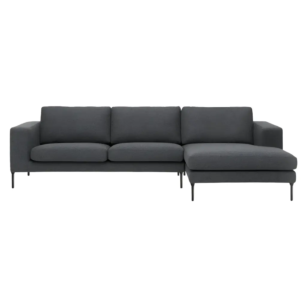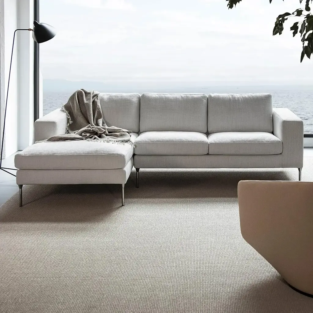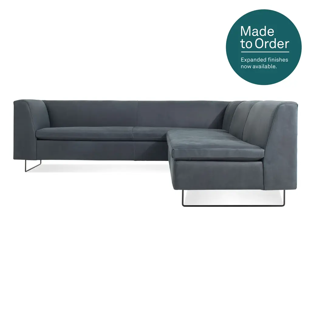 The Neo Sectional features a sturdy steel-reinforced laminated wood frame and a space-efficient steel spring suspension system. The seat cushions are made from CFC-free polyurethane with a continuous Dacron® wrap for added softness, while the back cushions contain a blend of feathers and siliconized polyester fiber for lumbar support. Available in both left- and right-facing chaise configurations.