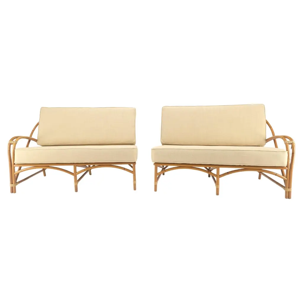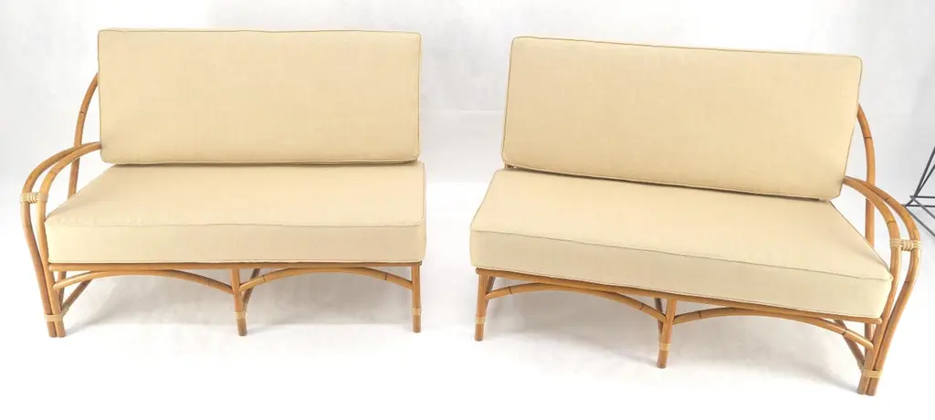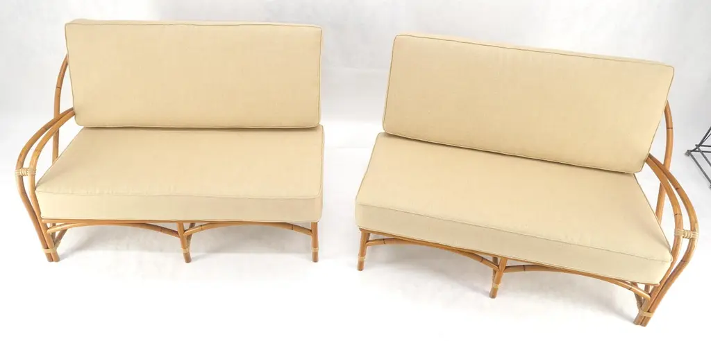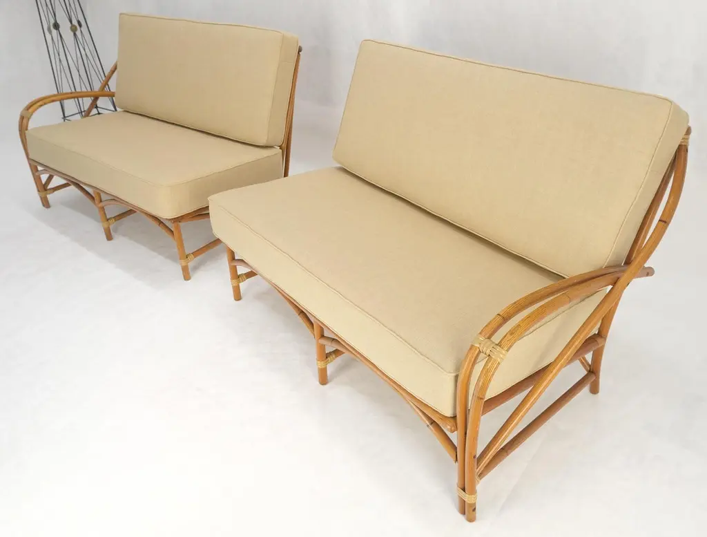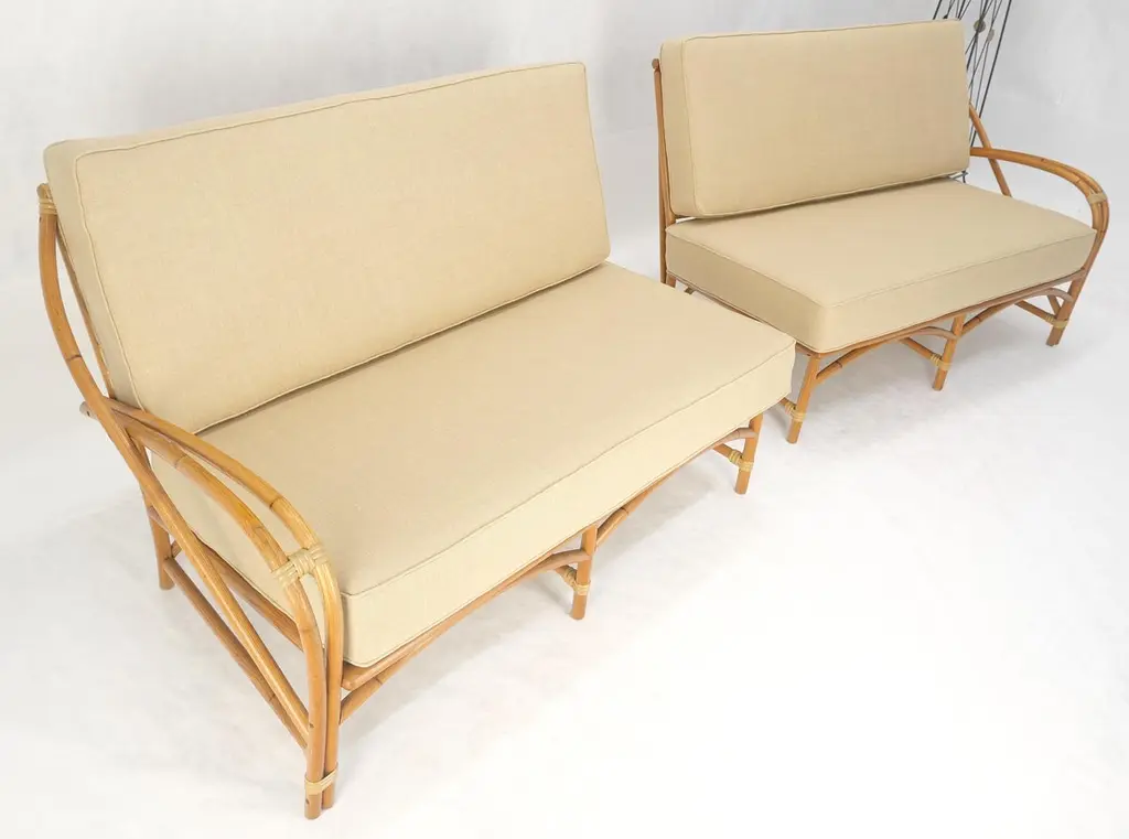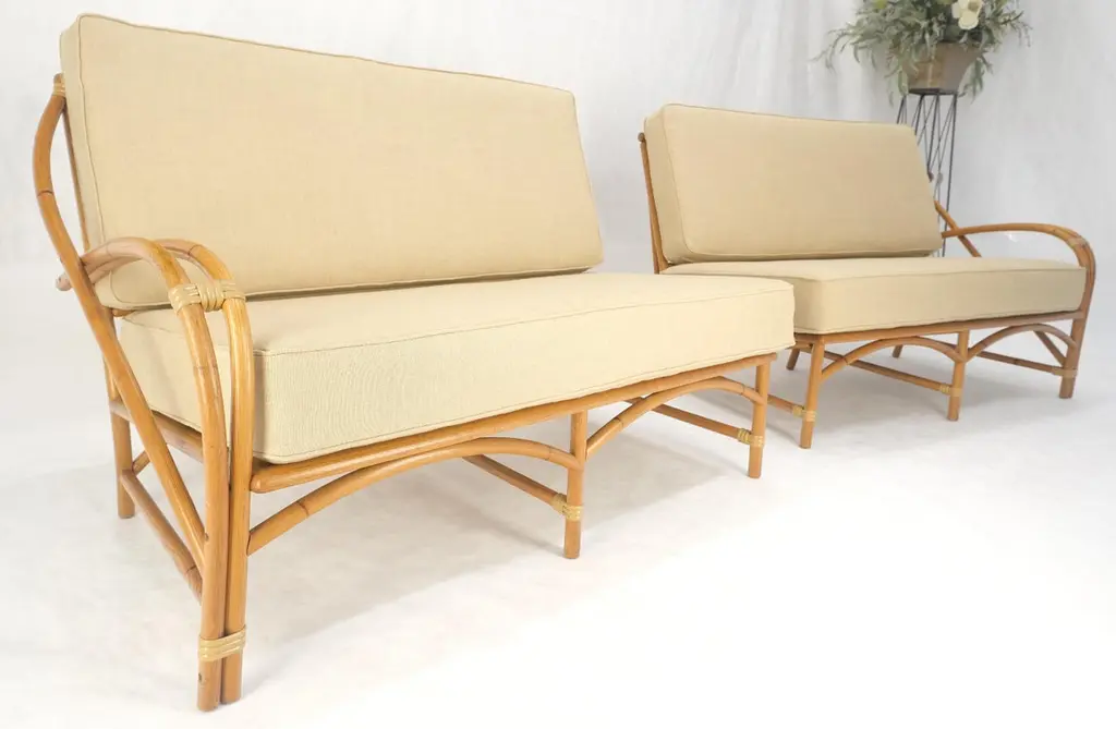 New Gold Linen Upholstery Bamboo 2 Part Sectional Sofa C1970s Mint!