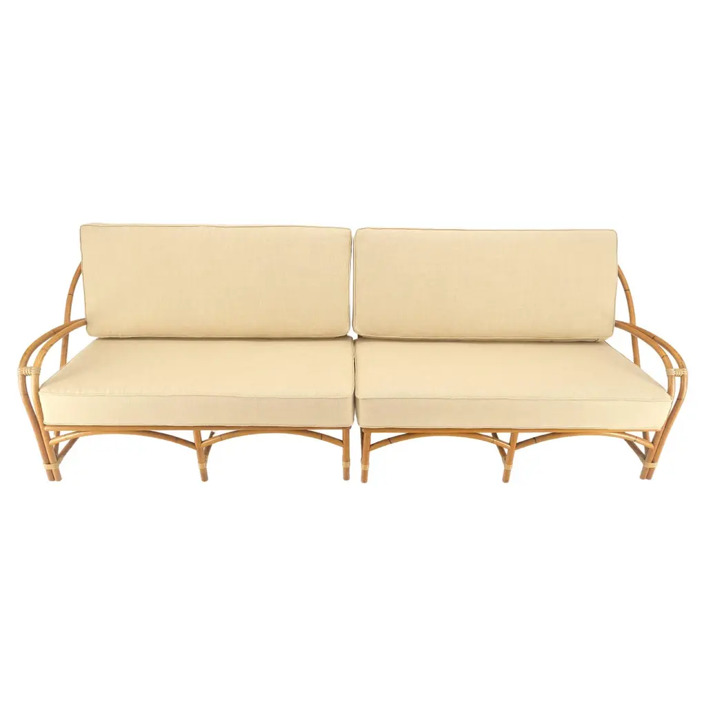 New Gold Linen Upholstery Bamboo 2 Part Sectional Sofa c1970s MINT!