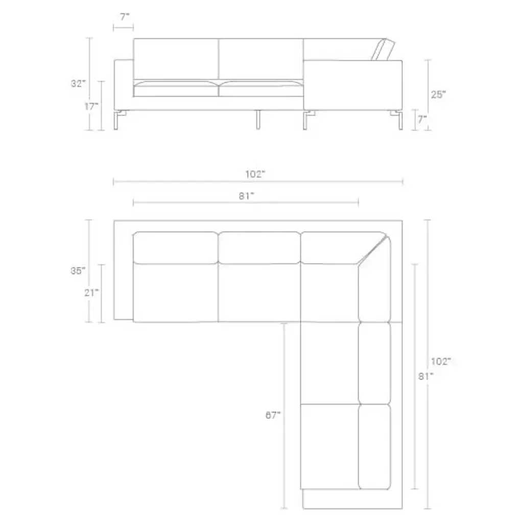 Complete your living room with the contemporary style of the New Standard Small Sectional Sofa by Blu Dot. This striking sofa features a kiln-dried American hardwood frame, powder-coated steel legs, and high resiliency foam cushions with a feather-and-down wrap, delivering a boxy, streamlined silhouette with unparalleled comfort and timeless aesthetic appeal. Highlights