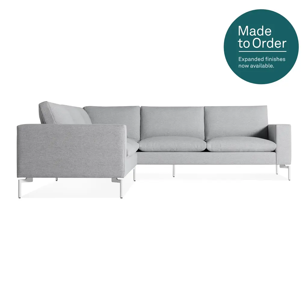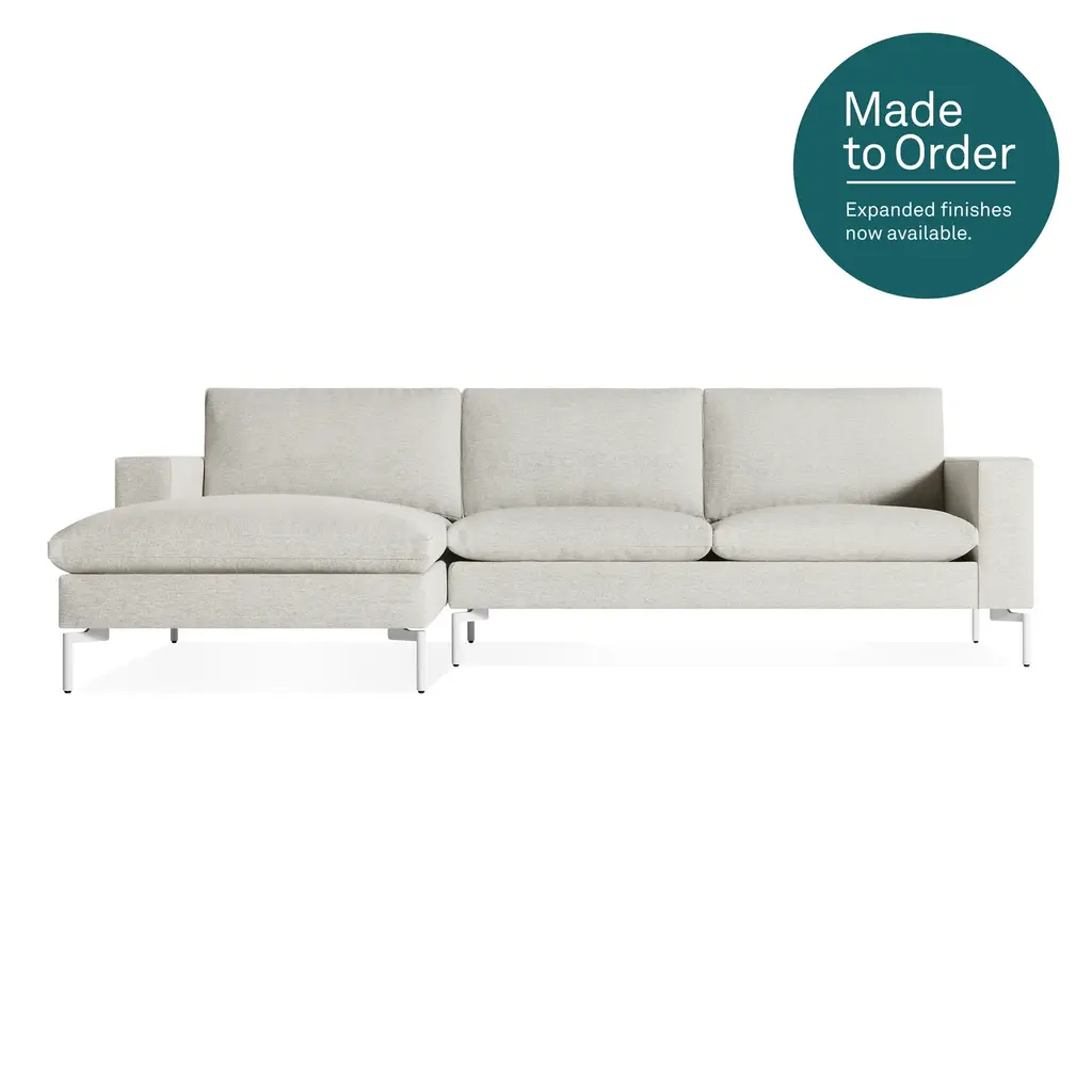 The New Standard Sofa with Arm Chaise from Blu Dot is a modern classic, perfected and updated to offer a fresh take on timeless style. Its invitingly wide arms and loose cushions come together with tuned proportions and eye-catching legs, creating a piece of furniture that epitomizes luxurious comfort in an elegant and exclusive design. Highlights