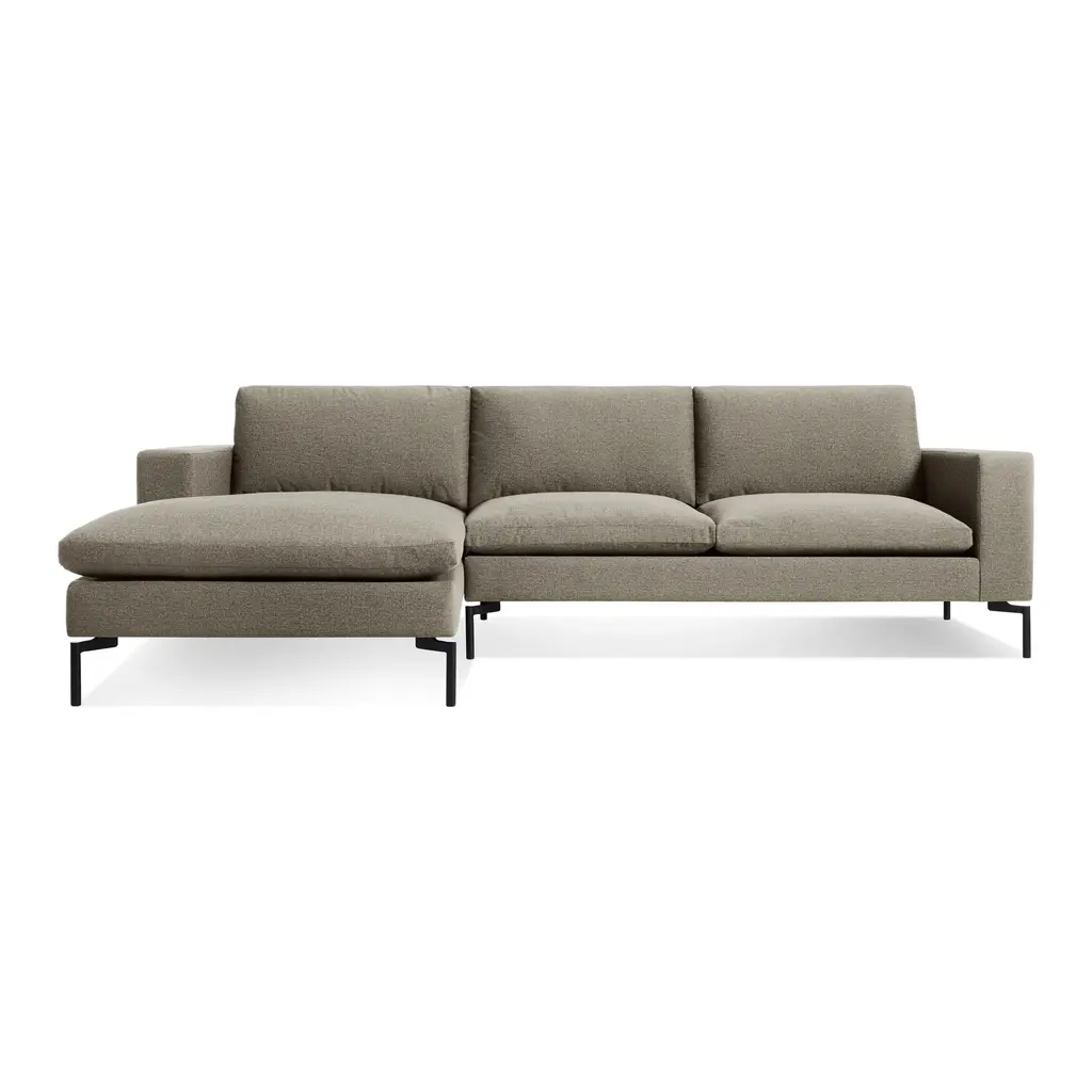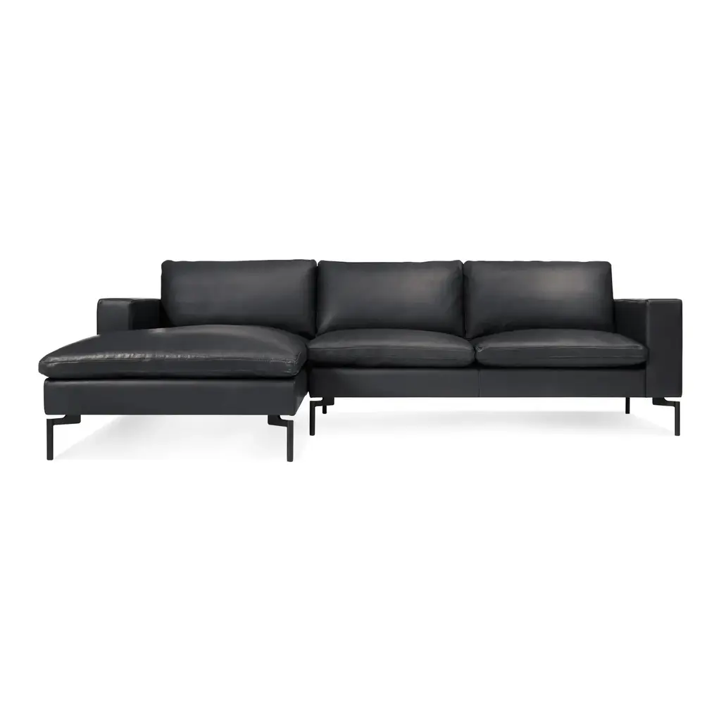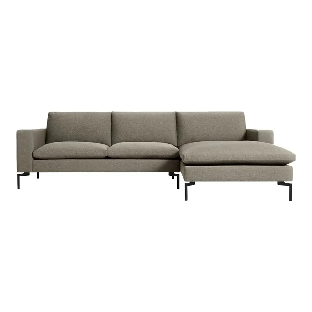 The New Standard Sofa with Arm Chaise from Blu Dot is a modern classic, perfected and updated to offer a fresh take on timeless style. Its invitingly wide arms and loose cushions come together with tuned proportions and eye-catching legs, creating a piece of furniture that epitomizes luxurious comfort in an elegant and exclusive design. Highlights