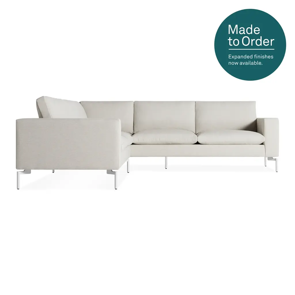 The New Standard Sofa with Arm Chaise from Blu Dot is a modern classic, perfected and updated to offer a fresh take on timeless style. Its invitingly wide arms and loose cushions come together with tuned proportions and eye-catching legs, creating a piece of furniture that epitomizes luxurious comfort in an elegant and exclusive design. Highlights