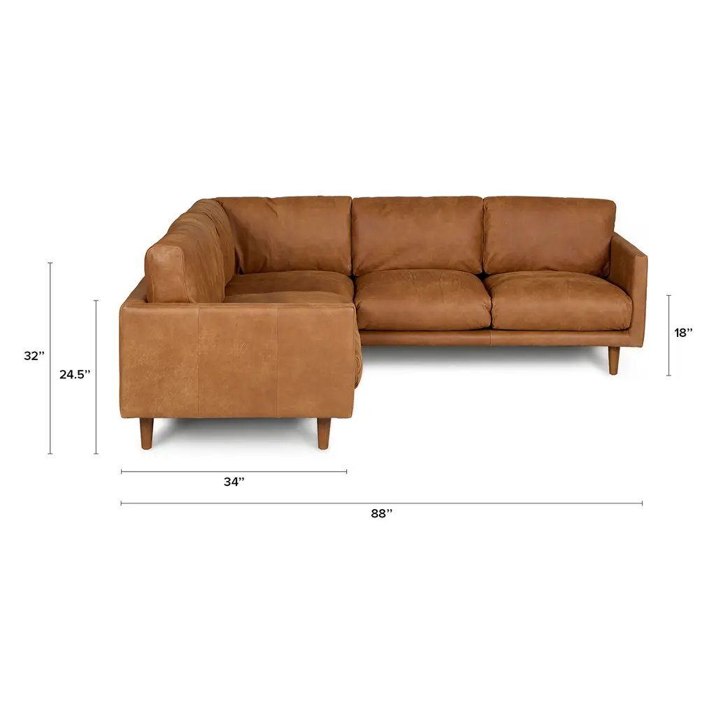 Nirvana 88" Leather Corner Sectional - Dakota Tan