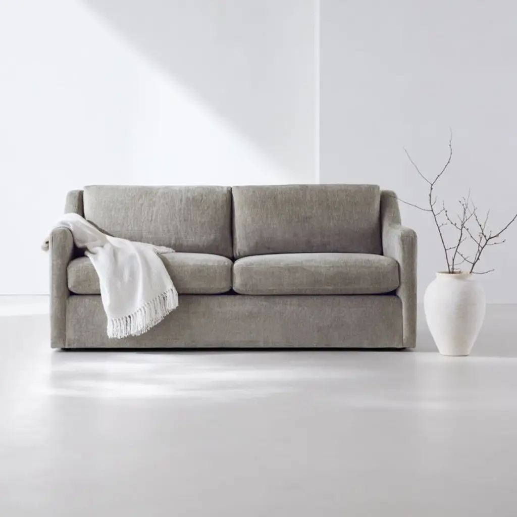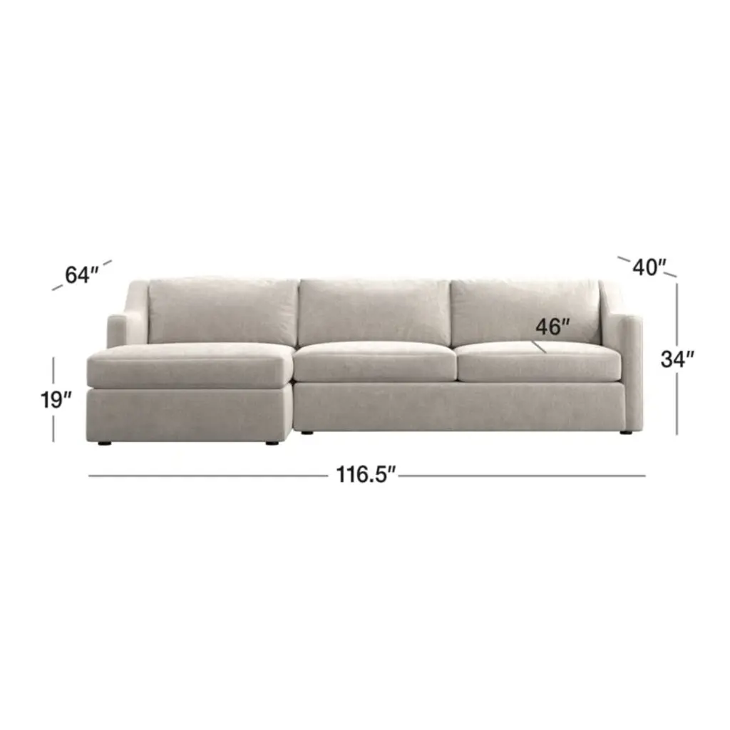 Updating the classic sheltering silhouette, Notch creates a casually comfortable sectional with clean lines and an open attitude. Arms take a little dip as an update to the classic sheltering silhouette, while generous seat and back cushions provide a casually comfortable sit that's slightly upright. Comprising a left-arm chaise and right-arm sofa, the sectional is tailored in a family-friendly basketweave of plush chenille for lots of touchable texture.