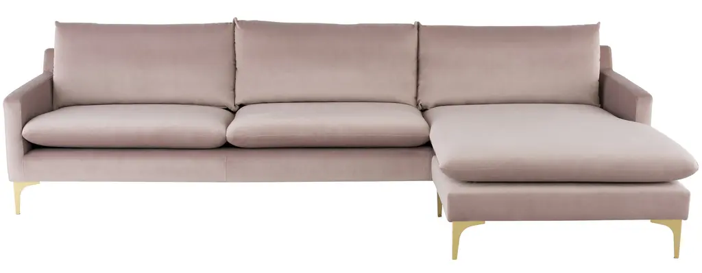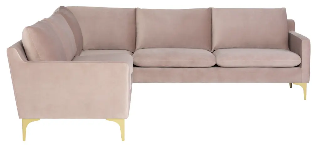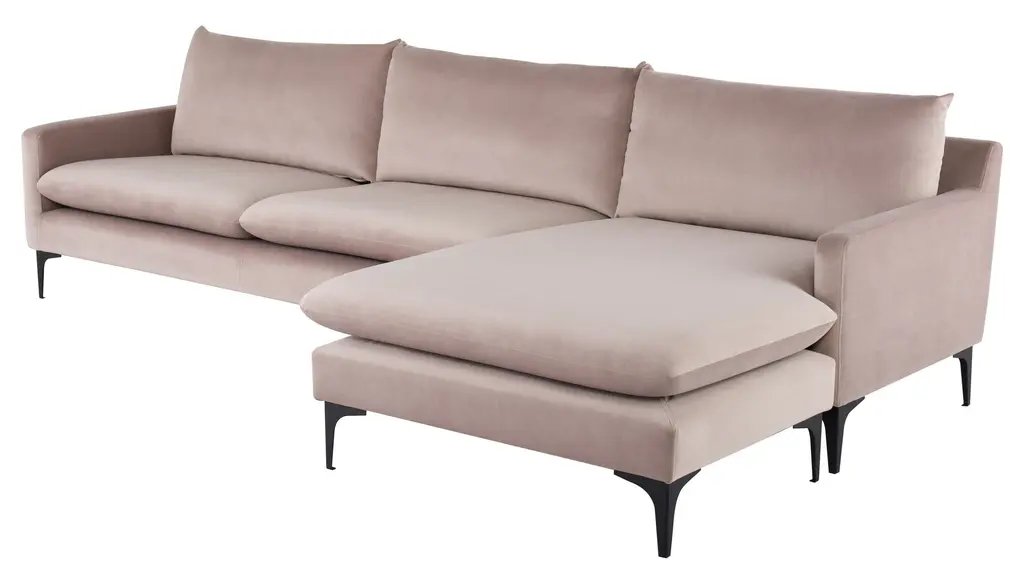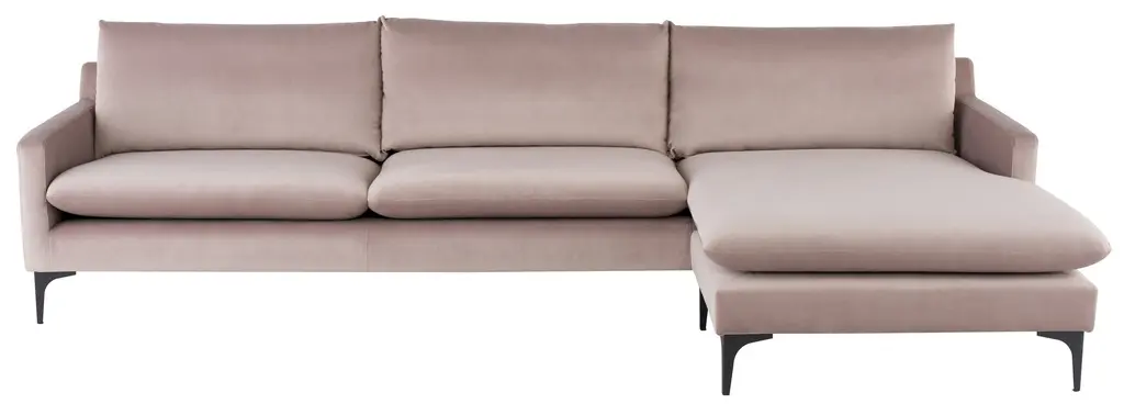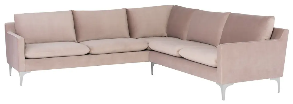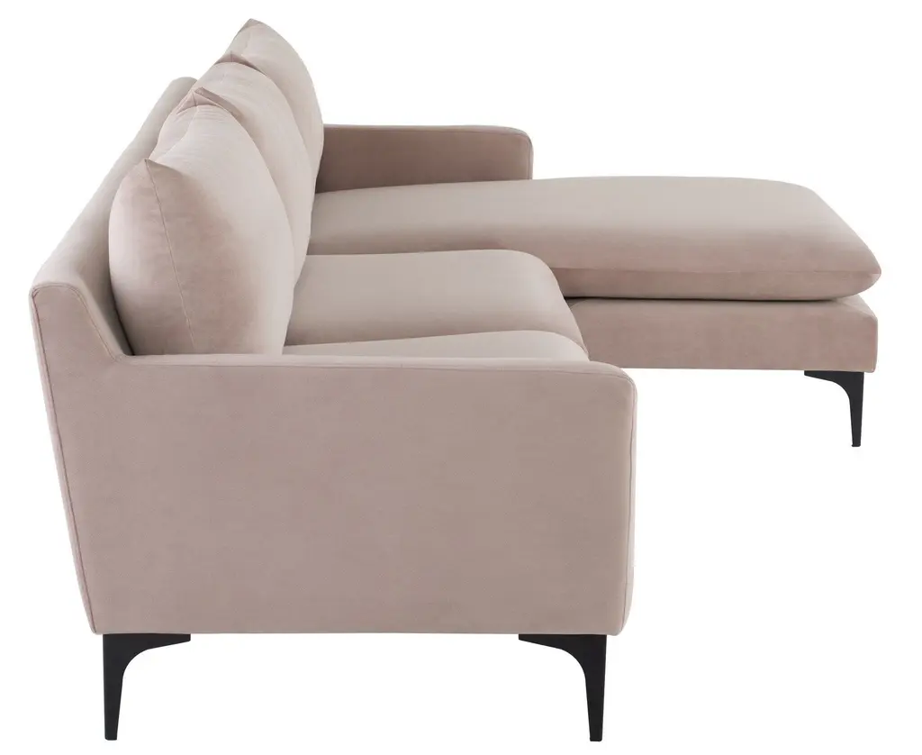 This sprawling 3 piece sectional by Nuevo combines the comforts of plush seating with the sophistication of strong, clean lines. The depth of its luxurious cushions are inviting, while its low profile adds to the dramatic allure. Consider the Anders sectional your answer to classic, yet cozy. Available in two different