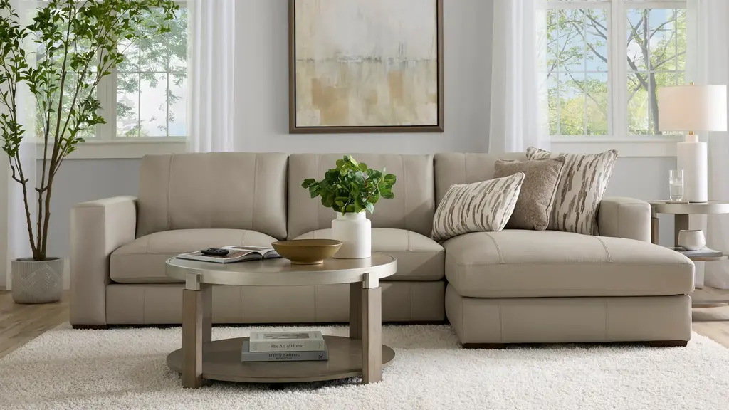 You're invited: Indulge in the contemporary elegance of the Oaklynn sectional. Wrapped in beautiful and luxurious top-grain leather, the Oaklynn is a masterpiece of comfort and craftsmanship. Its oversized silhouette and generous seating area deliver a commanding presence while plush, deep cushions invite you to sink in and unwind.
