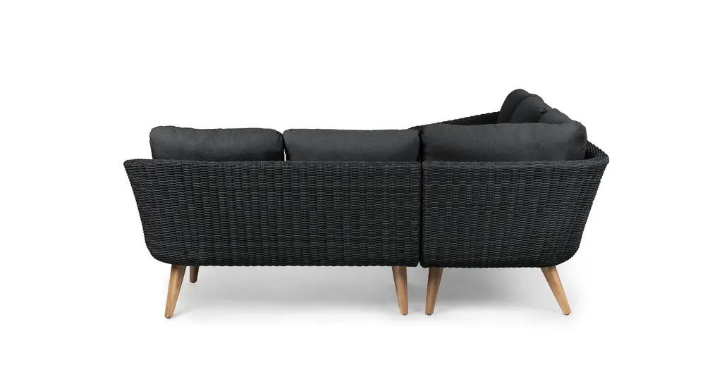 Composed, stylish, and effortless. The Ora Sectional is your friend who’s always ready for an impromptu barbeque. Designed with waterproof synthetic wicker, solid acacia legs, and removable water-resistant cushions, the Ora is easy-going and adaptable. Well-suited for your weeknight drink and your weekend cocktail party.
