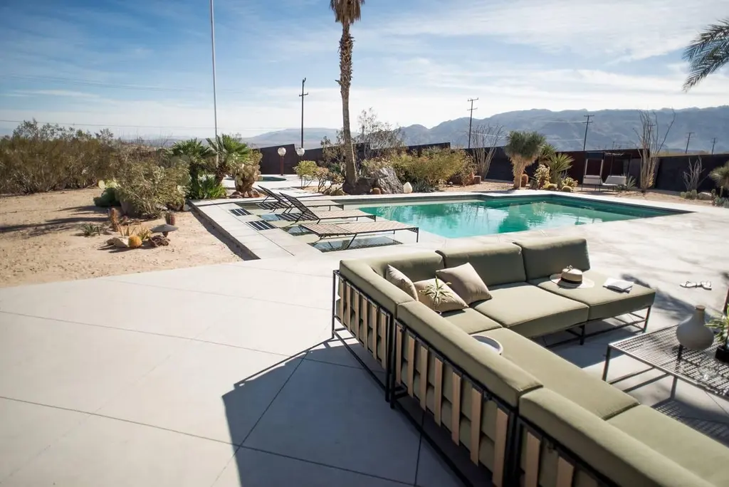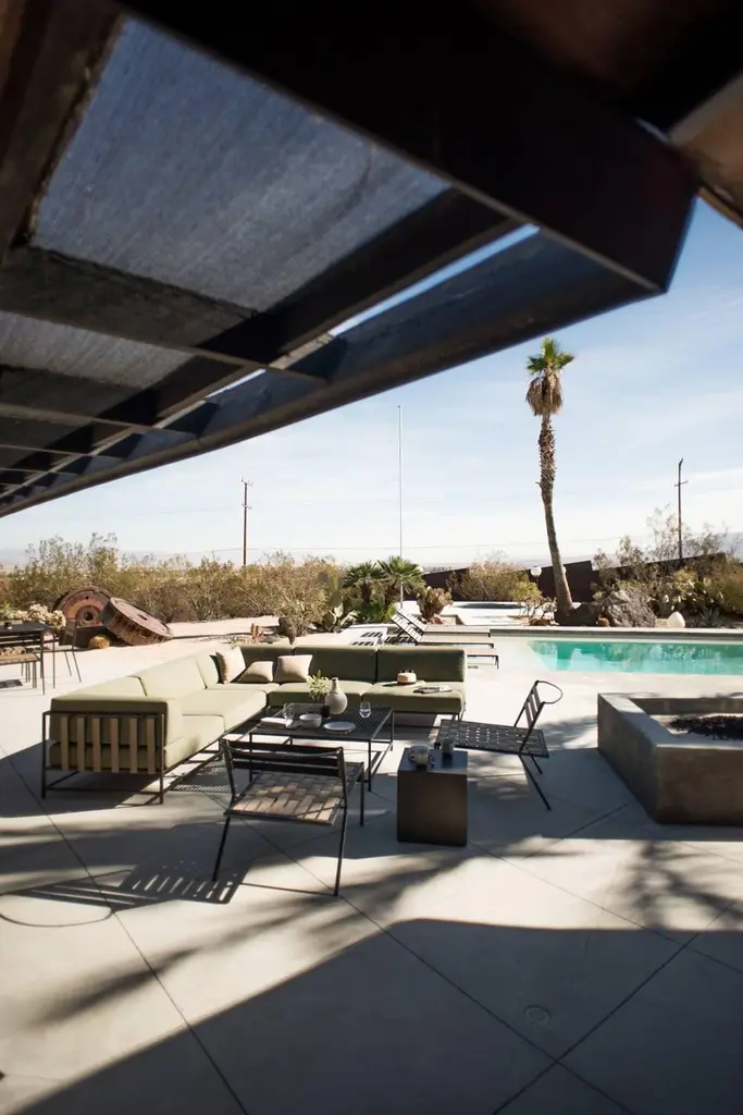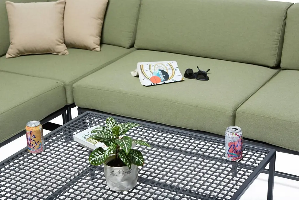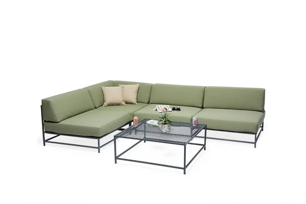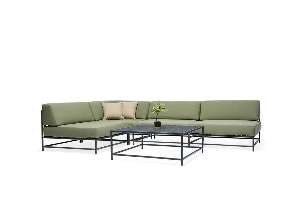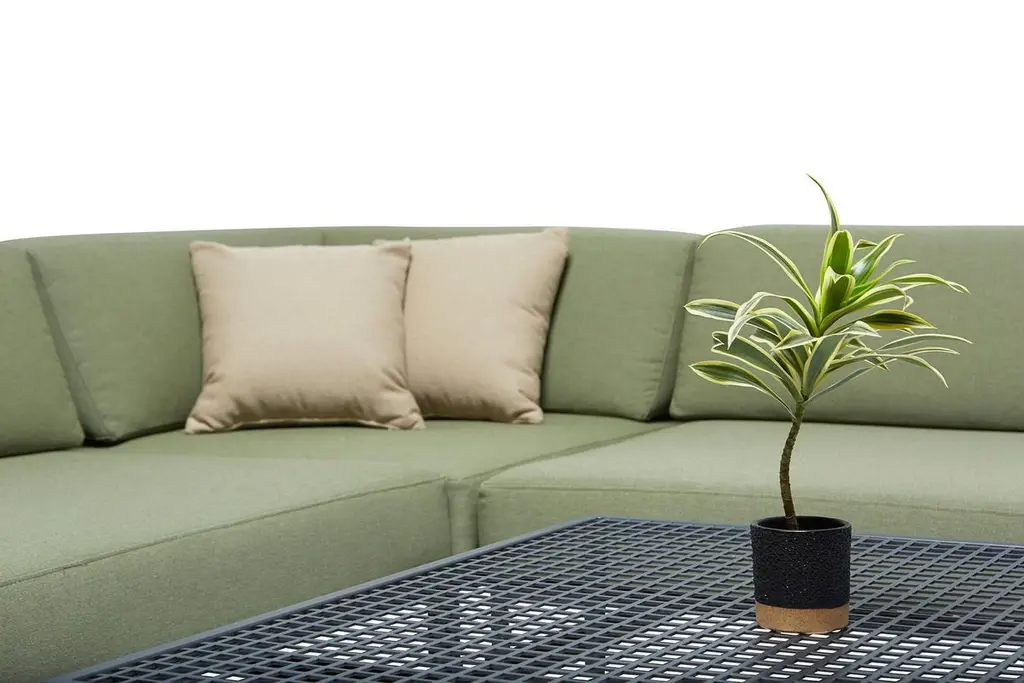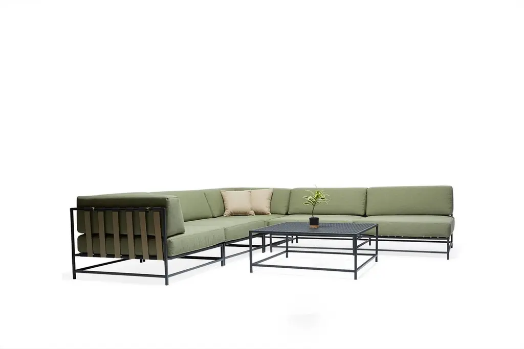Inspired by weekend visits to the stark desert landscapes found a few hours east of Los Angeles, this collection is composed of steel frames that have been zinc primed and powder coated for rust resistance, interwoven stretch webbing for a soft and springy seating experience, and UV and weather resistant Sunbrella Heritage fabric. Custom dimensions, materials, and finishes are available. The loveseat can be a comfortable seat on its own, or used as part of our Modular Sectional.Shown here with Leaf upholstery and Charcoal frame, with Tan or Black webbing. Other materials and finishes are available.This item is made to order, in Los Angeles.Coffee table and throw pillows not included.