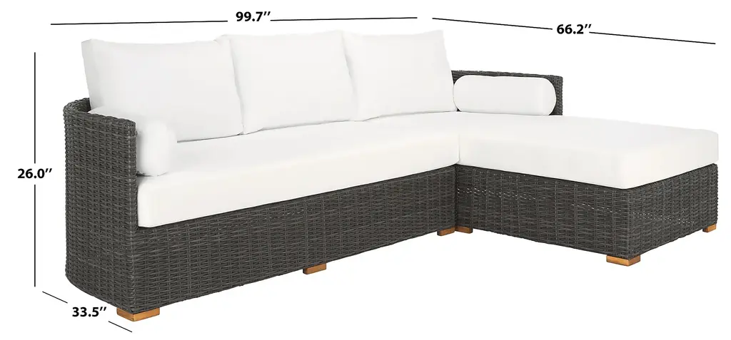 Liven up any outdoor space with the elegance and comfort of our Pargeo chaise sectional. Our charming sectional enriches your space with textural warmth and comfort. The sleek curved edges and all-weather wicker weave lend breezy sophistication to the sectional. With deep seats and plump back cushions, our sectional invites you and your family for a comfy stay. It is upholstered in white performance fabric for a crisp and relaxed feel. Perched upon powder-coated aluminum legs, the sectional can transform your patio, terrace, or sunroom into an all-year-round gathering space. Customer assembly required.