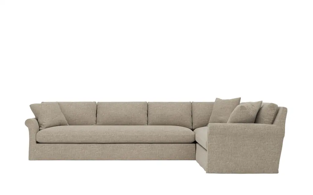 Generously proportioned with relaxed appeal, the right 106” Pauline slipcovered corner sectional lends casual elegance to any family room. Gently sloped, flared arms mingle with clean lines on a graceful silhouette. Soft yet supportive, the bench seat cushions are designed for plush comfort, with a foam core surrounded by a blend of fiber, down, and feather fill. Layered lumbar and back pillows create a cozy, tiered effect. Choose from washable slipcover fabrics in a variety of serene hues.