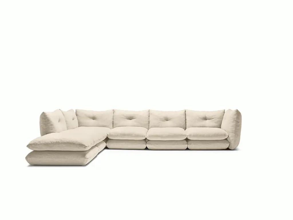With deep seats designed to be sat in, not on, this comforting refuge beckons you to jump in and relax. Like magic, it’s a viscerally all-encompassing experience that makes you forget the piece and just enjoy being in it.The Perron Pillo Sectional challenges preconceptions. What appears to be a freestanding stack of oversized pillows is, in fact, engineered to offer lounge-like support for sitting, curling up, and stretching out. Creating a sofa that’s evocative and inviting was integral to designer Willo Perron’s approach. “Everything I do has a bit of humor in it,” he says. “I wanted the sofa to evoke surprise and emotion.”