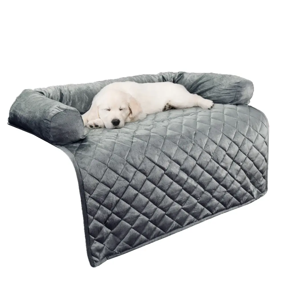 Protect your furniture while providing comfort for your pet with this 35x35-inch Couch Cover by PETMAKER. The sofa cover features a water-resistant base layer to maintain hygiene and a three-sided memory foam bolster which provides a soft, comfortable pillow for your pet to enjoy while extending the protection to the back and arms of your furniture. With its stylish diamond-pattern quilted finish, this couch cover for dogs, puppies, cats, and kittens enhances decor while keeping your home clean and tidy, protecting sectional couches, sofas, love seats, vehicle interiors, or armchairs up to 35 inches wide. Item Dimensions Features