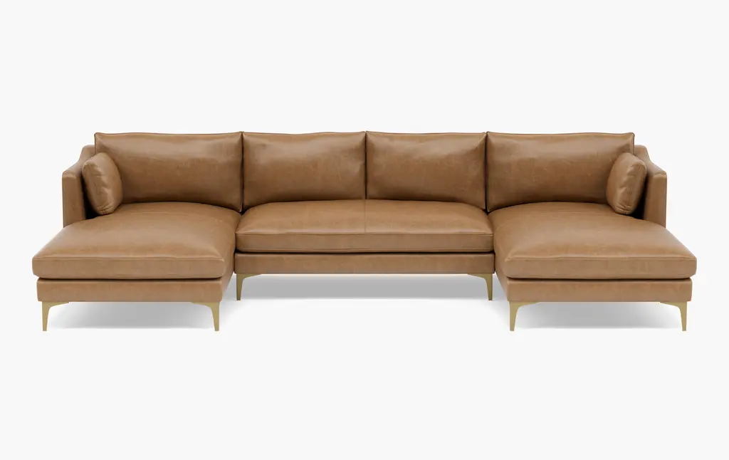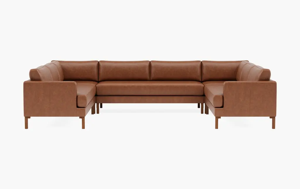 Whether you're weaving a snug haven or sprinkling elegance at home, the Piazza leather sofa is your ticket. This sectional isn't just trendy; it's a time traveler. Thanks to its robust hardwood frame and tough leather, it laughs in the face of wear and tear. This low profile sofa flaunts raw seams, rocking a fusion of rustic and modern vibes. Those cushy, cloud-like surfaces? The secret recipe for comfy-cozy support. It's your after-hours haven – prepare to melt!