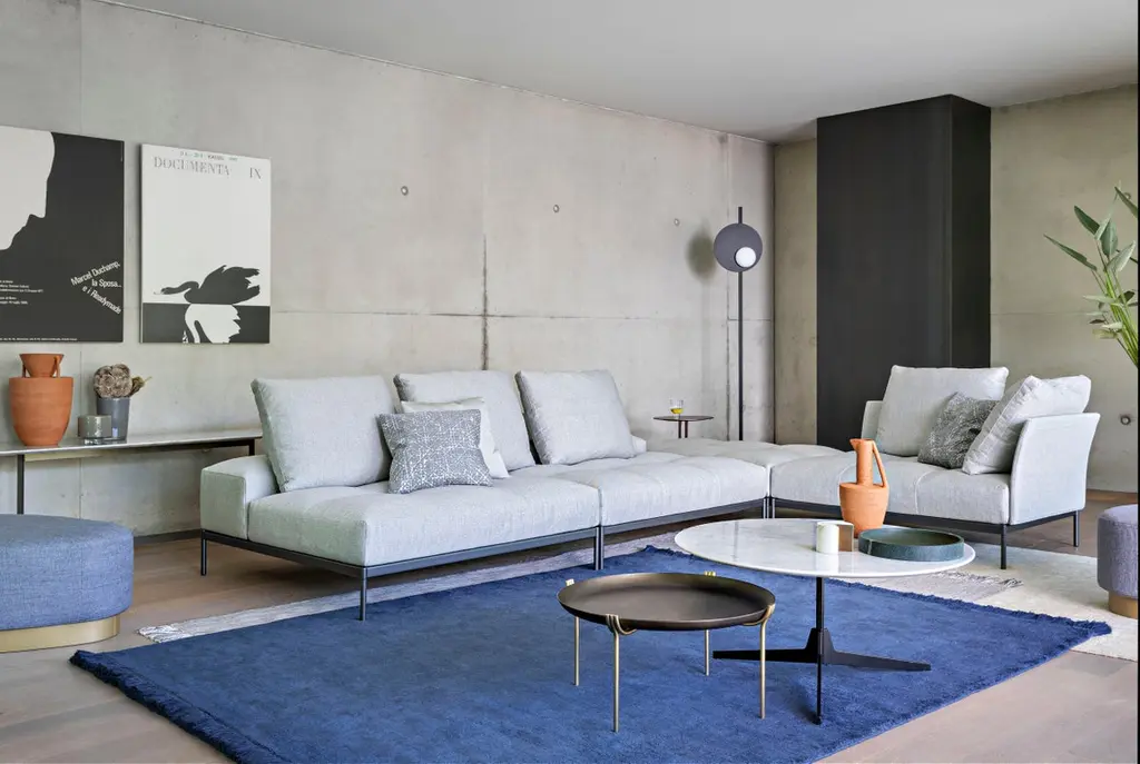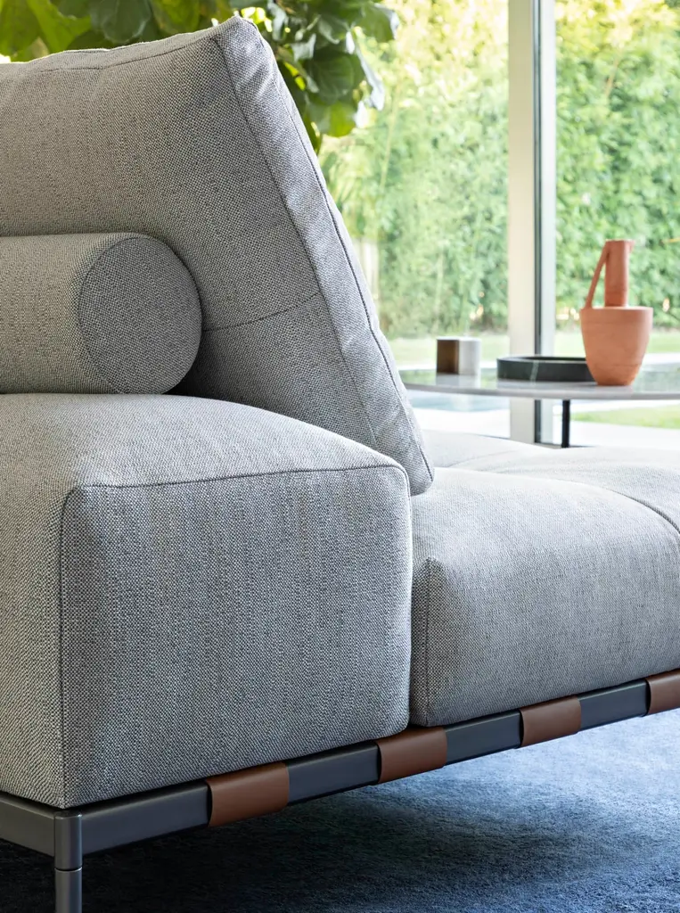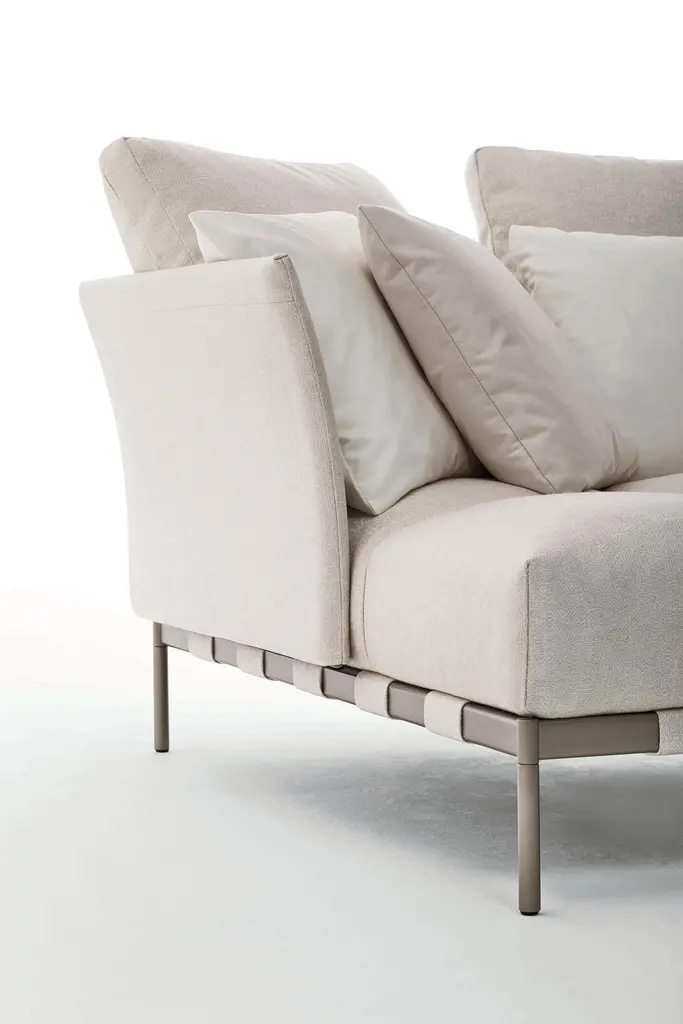 Pixel Light, the new seating system design by Sergio Bicego, stems from the desire to expand on the concept of form flexibility to reach a more sophisticated one of fluidity of spaces. We investigated new possibilities and uses for the Pixel sofa, the iconic project for Saba, that this year celebrates its tenth anniversary. We lightened its form by improving the technical performances but while still maintaining intact its unique style that now allows it to inhabit both interior and exterior spaces. The thought that accompanied us through this project was indeed the desire of dissolving the boundaries between inside and outside. Pixel Light indoor adds glamour and lightness to any space, even though it remains faithful to its nomadic and fluid DNA. It distinguishes itself from the original project for the varnished iron aerial base available in champagne or noir finish, for the new comfortable back pillows in two sizes and also for the particular and high-performance padding canvas in breathable microfiber quilted with cotton canvas.Born in 1953 he left formal education and began, almost by chance, his experience in the field of the padded furniture. Fascinated by the world that surrounded him, he eagerly devoted himself to researching building forms and techniques which have borne fruit for the companies in which he worked. In 1991 he opened his studio as an independent designer and in 1993 he came across Saba Italia. New challenges and new incentives lead to the creation of the “nomad sofa”: Taos, Ananta, Limes, Nesting, Pixel. Creations that were born from reflection of new desires that encourage us to live in a less formal way, equipped with systems that enable change with simple gestures, by playing with shapes.Structure: In plywood with variable-density polyurethane foam core (35IM – 40IPP – 50IP and 40 soft and flexible to slow return) clothed with siliconised polyester fiber 400gr/sqm quilted with 100% cotton fabric. Armrests are made in plywood with variable-density polyurethane foam (30IM– 40IPP e 40 soft and flexible to slow return) clothed with siliconised polyester fiber 400gr/sqm quilted with 100% cotton fabric. Back panels are in plywood padded with polyurethane foam 75IPP and covered with velfodera coupled to polyurethane foam.Feet: Painted metal base h. 19,5 cm. Available with or without fabric bands.Padding: Back cushions are in polyester fiber mixed with washed and sterilized goose feather divided into sections and clothed with 100% cotton fabric. The cylinder, diameter 22 cm, is in polyurethane foam core 30IM with black painted metal insert and clothed with polyester fiber 400gr/sqm coupled to 100% cotton fabric. The cylinder, diameter 11 cm, is in polyurethane foam core 30IM and clothed with resin 100gr/sqm.Additional information:Material: Polyurethane foam, upholstery, metalUpholstery: Cat.Extra, Kami - A1 col.28Frame finish: ChampagneDimensions: 336 W x 122 D x 67 H cmSeat height: 41 cmAvailable in other upholstery options: C, E, special, vip, top, elite, royal, lusso, pelle club, pelle master, pelle floridaAvailable in other frame option: BlackAvailable in other structural options