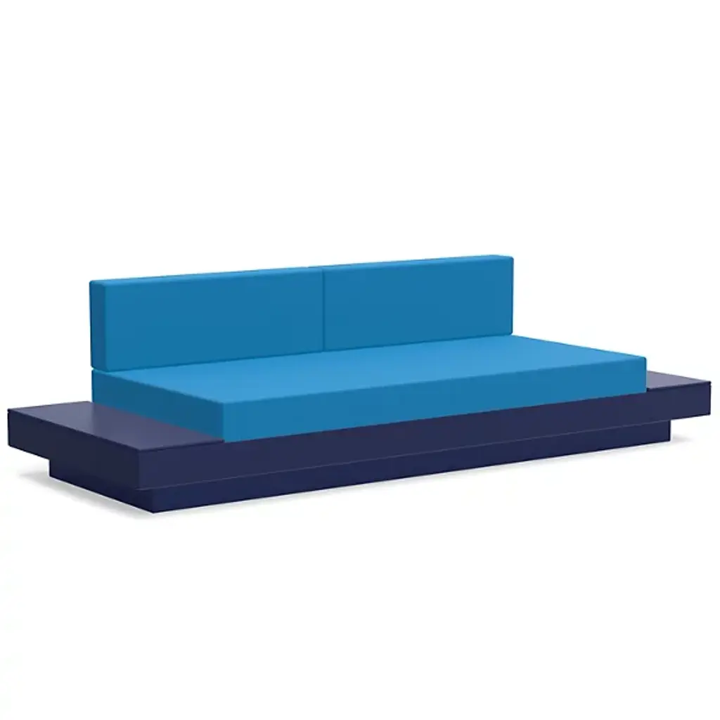 A new direction in modern outdoor lounge seating. The Pixel Outdoor Round Corner 45 Degree Sofa Sectional by Vondom was designed by Ramon Esteve to work together with other Pixel modules to create the total picture: a custom outdoor seat-scape. The base is a wedge-shaped curve of rotation-molded polyethylene resin. It provides a strong and stable foundation for the correspondingly structural seat and back cushions, which feature smooth and weather-resistant acrylic fabric upholstery. Includes 4 optional legs for taller seating.