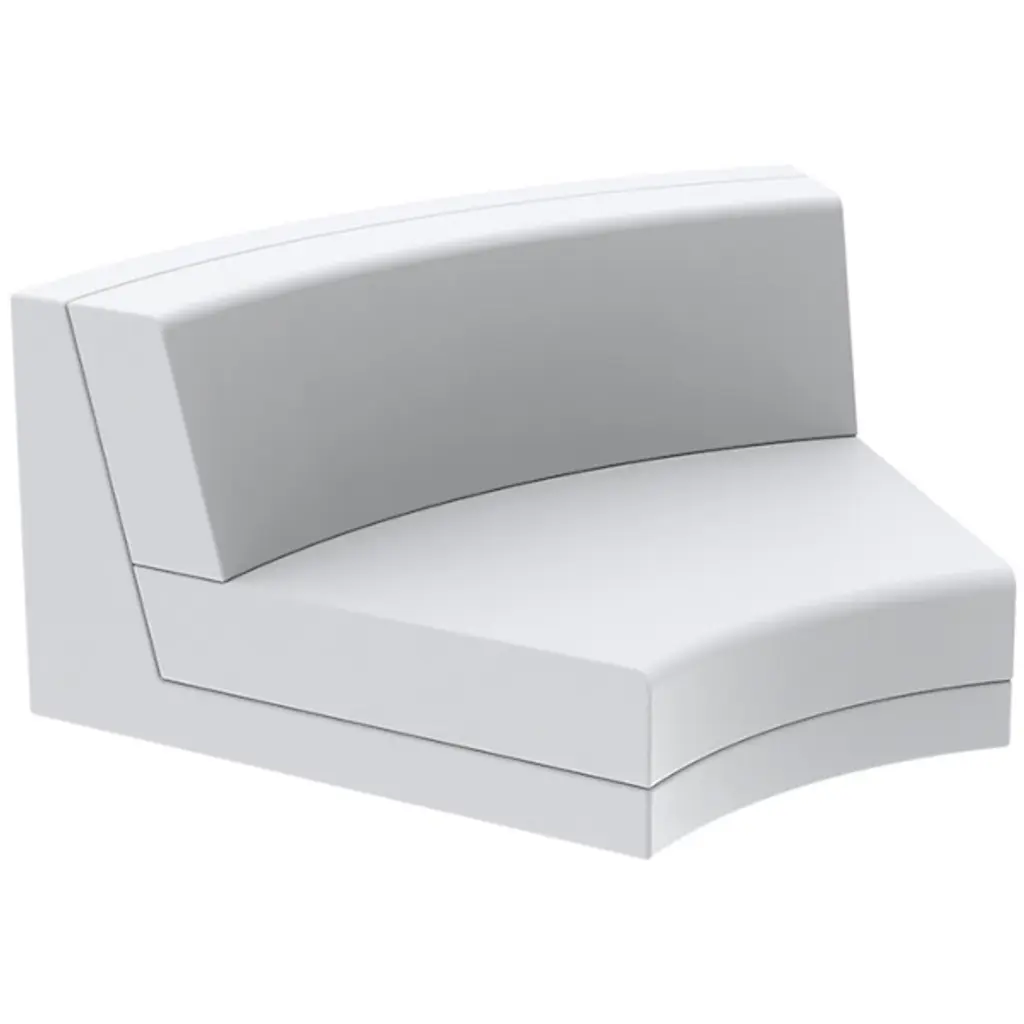 A new direction in modern outdoor lounge seating. The Pixel Outdoor Round Corner 45 Degree Sofa Sectional by Vondom was designed by Ramon Esteve to work together with other Pixel modules to create the total picture: a custom outdoor seat-scape. The base is a wedge-shaped curve of rotation-molded polyethylene resin. It provides a strong and stable foundation for the correspondingly structural seat and back cushions, which feature smooth and weather-resistant acrylic fabric upholstery. Includes 4 optional legs for taller seating.