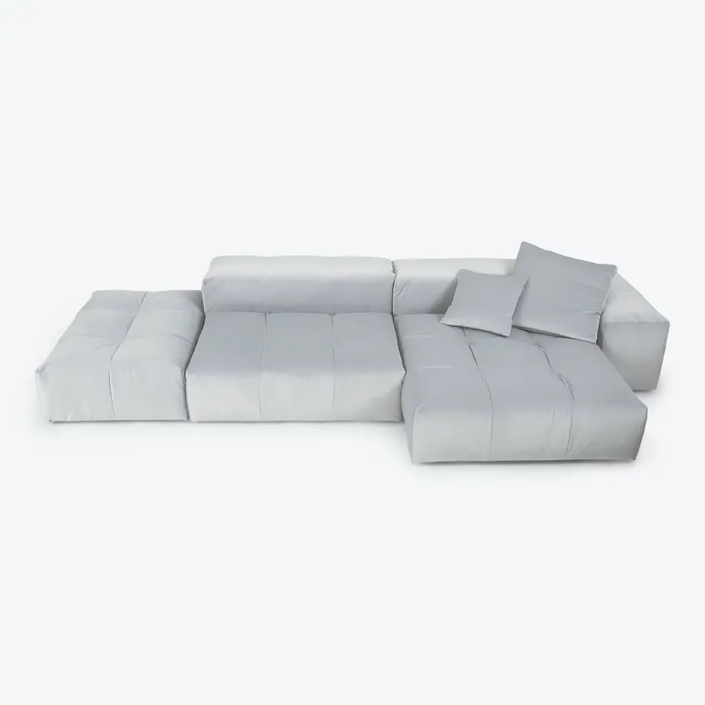 Bring versatility and luxury into your home with the Pixel Sectional, an exclusive piece from abc carpet & home. Designed for those who appreciate endless design possibilities, this sectional features spacious, cushioned seats that can be effortlessly arranged and rearranged to adapt to any space or occasion. Handcrafted with meticulous attention to detail in Italy, it embodies the timeless elegance and craftsmanship synonymous with Italian design. Complete with a removable slipcover, this sectional makes light work of entertaining and hosting guests, offering easy cleaning options and the flexibility to refresh your space by changing up your look. *Throw pillows not included. Measuring an impressive 144 inches in width, 25 inches in height, and 64 inches in depth, this sectional provides ample seating space for you and your guests to relax in comfort and style. With a seat height of 16 inches and arm heights ranging from 20 inches to 25 inches, it offers optimal support and relaxation for every seating arrangement. Available in five captivating colors, this sectional adds a touch of glamour to any living space. Crafted from 100% Italian velvet polyester, it combines plush comfort with durability, ensuring years of enjoyment. For maintenance, simply dry clean as needed and occasionally vacuum to keep the velvet looking fresh. To preserve its optimal condition, avoid direct sunlight to prevent fading. Please note that due to the nature of dye lots, slight variations in color may occur, adding to the uniqueness of each piece. Transform your home into the ultimate haven of comfort and style with the Pixel Sectional and discover the perfect centerpiece for your home.
