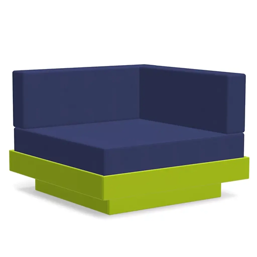 The Platform One Outdoor Sectional Corner Sofa from Loll Designs infuses 'corner office comfort' into the Platform One Sectional collection, combining modern aesthetics with superior American craftsmanship. Crafted in the USA, this sofa features deep, plush seating and resilient Sunbrella fabric cushions with moisture-resistant cores. Its sturdy construction ensures durability and effective water drainage, while recycled HDPE and UV stabilizers preserve its vibrant color. Ideal for year-round outdoor use, this weather-resistant piece enhances any contemporary space by seamlessly slotting into corners and expanding seating arrangements.