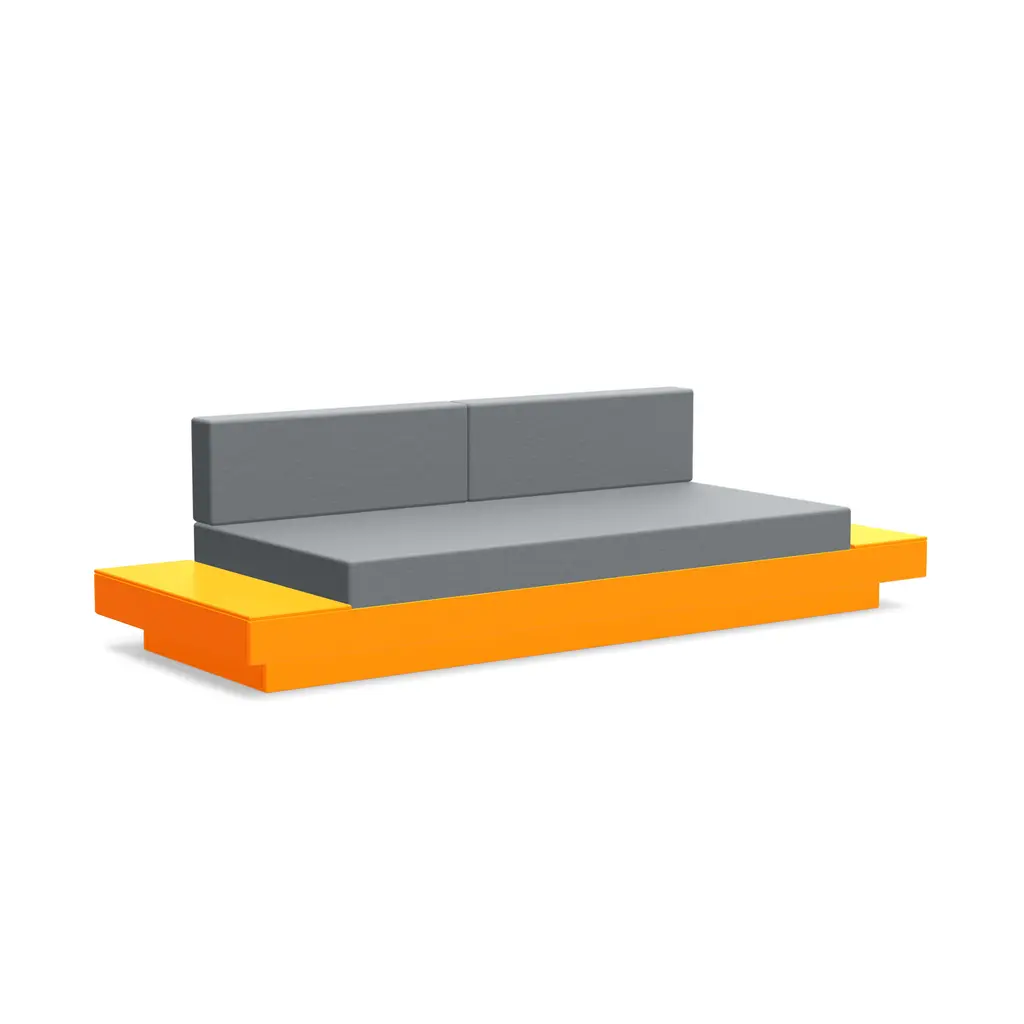 Sink in and relax into the Platform One Sofa with Table, featuring intentionally deep seating and durable Sunbrella fabric cushions, with moisture repellant cushion cores. Neutral grey powder coated steel uprights support a poly backrest matching the sofa's base. The sofa base incorporates vertical seat supports for extra durability and flow through of water in inclement weather. Platform One keeps your refreshments close and your lollygagging comfortable. Modern meets lazy. Features UV INFORMATION: RICHLITE: LOW-IMPACT MANUFACTURING: