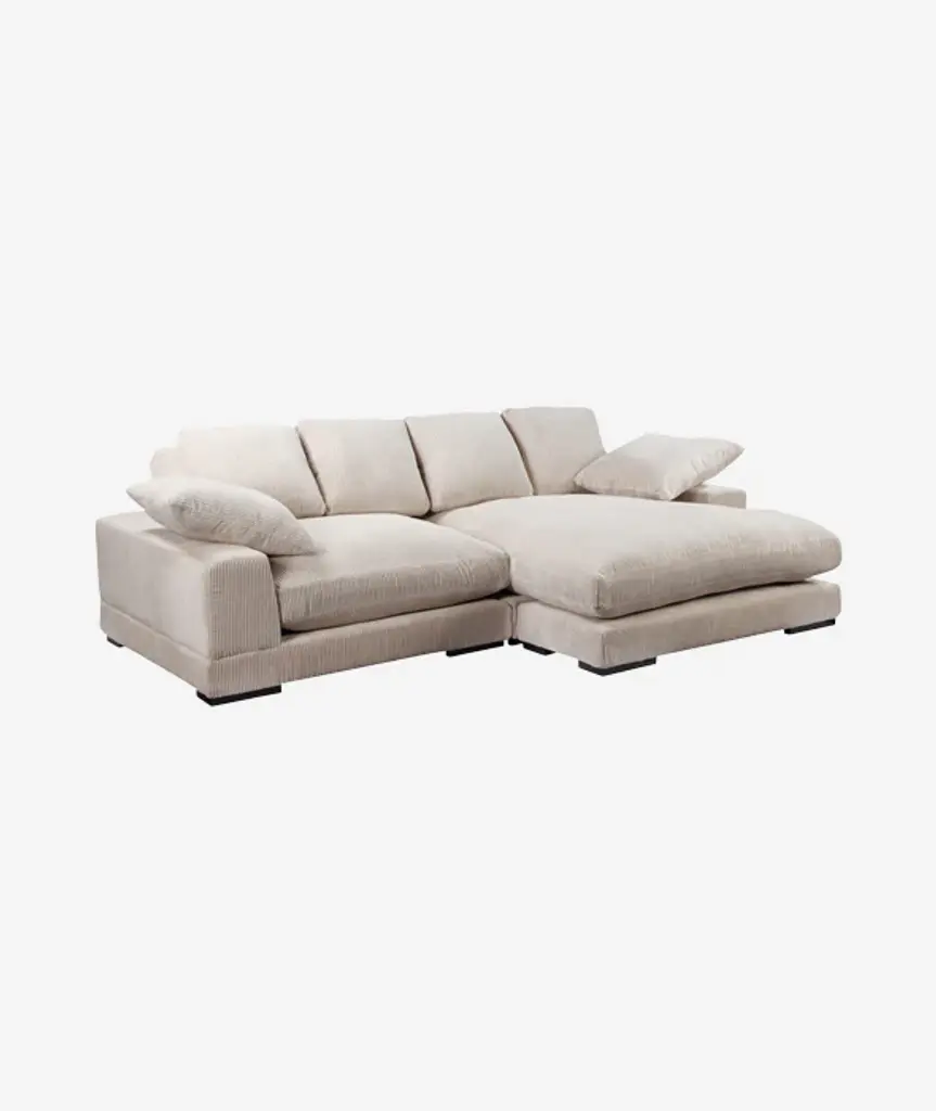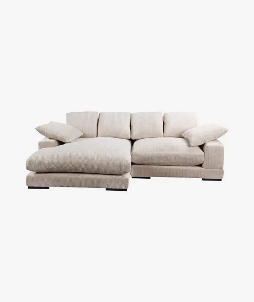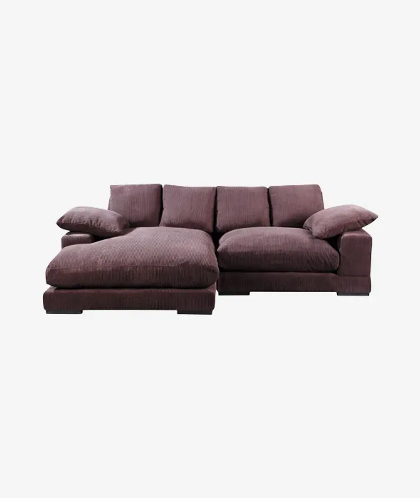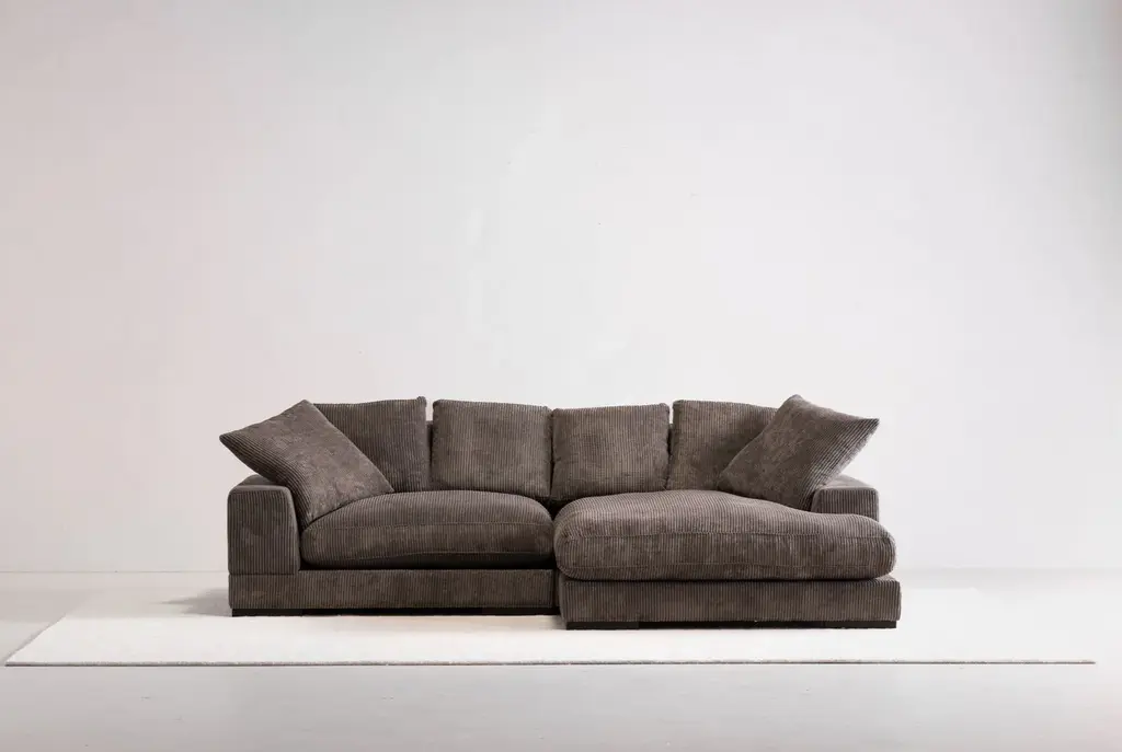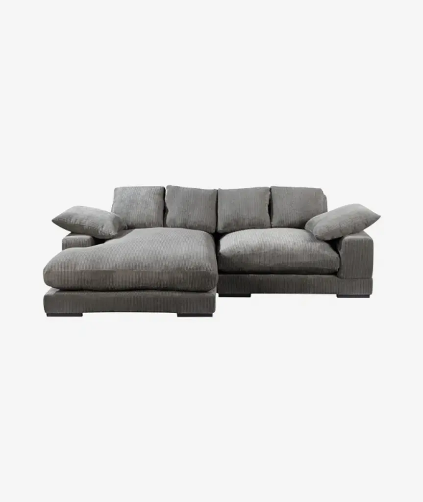 A fusion of comfort and elegance with clean lines and plush cushions, the Plunge sectional is masterfully crafted to maximize space and provide unparalleled relaxation. Its versatile flip chaise feature allows a left or right-side orientation that effortlessly adapts to create a sanctuary of style and repose, while its improved channeling and filling distribution ensures soft landings and comfort for years to come.