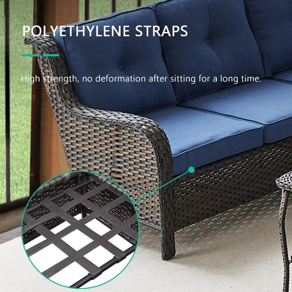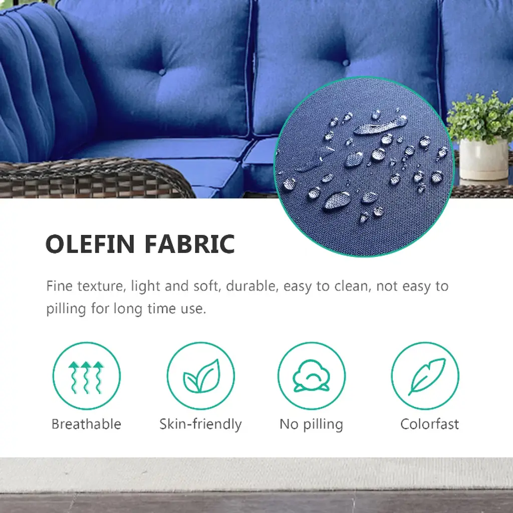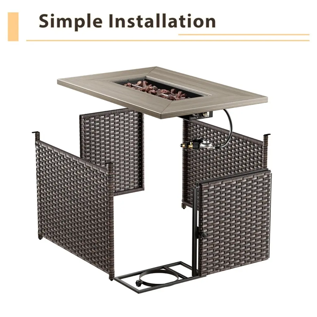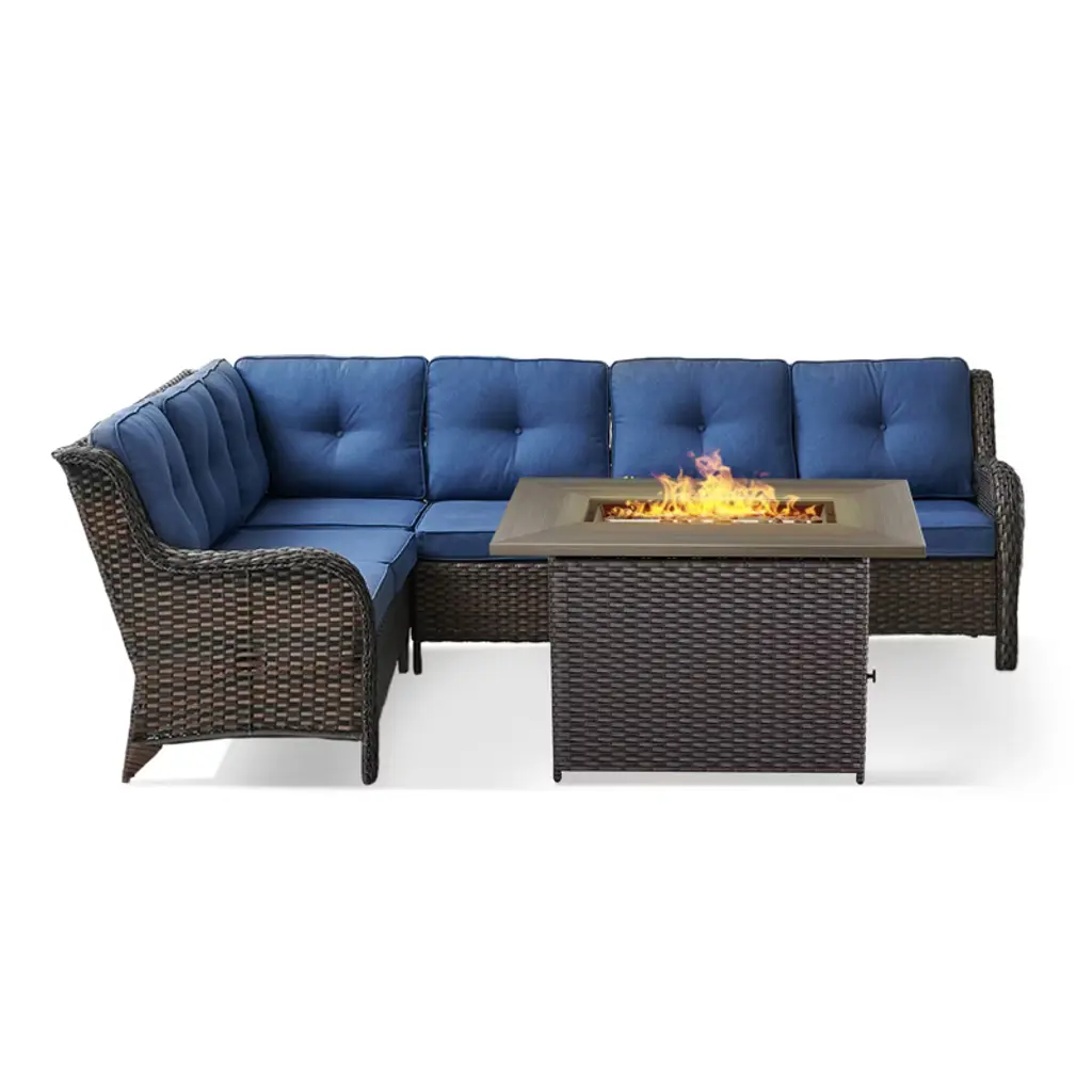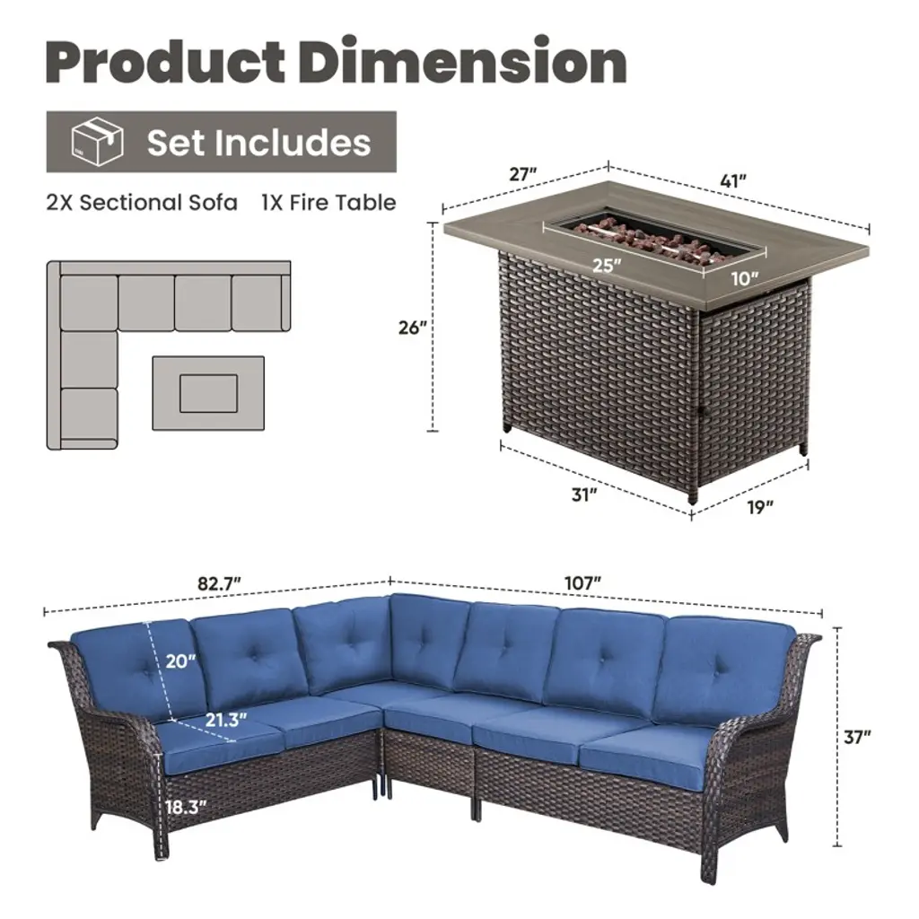 Introducing the POCASSY Outdoor Sectional Sofa Set with Fire Pit Table!athe perfect addition to your backyard get-togethers! This stylish patio furniture set with fire pit includes an L-shaped sectional sofa and a spacious 41" rectangular fire pit table that provides a 50,000 BTU propane flame for a warm ambiance. Made with a durable powder-coated steel frame and wrapped in sleek hand-woven PE wicker, it's as sturdy as it is beautiful. The fire pit table comes with a convenient cover so you can enjoy cozy evenings by the fire in the cooler months and easily convert it to a dining or coffee table in the warmer months. Whether you're gathering around the fire to keep warm or sharing a drink with friends, this furniture set is the ultimate upgrade for outdoor family entertainment and relaxation.