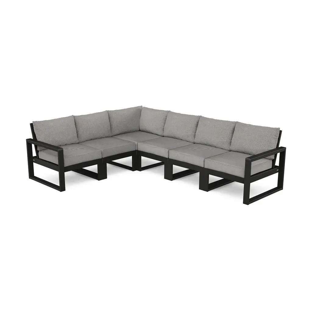 One of our ultimate deep seating sets, the EDGE 6-Piece Modular Deep Seating Set radiates plush luxuriousness in its grand scale and versatile modern design. This set includes three EDGE Modular Armless Chairs, one EDGE Modular Left Arm Chair, one EDGE Modular Right Arm Chair, and one EDGE Modular Corner Chair. Perfect proportions, crisp right angles all topped with plush supportive cushions make the POLYWOOD® EDGE Outdoor Furniture Collection the embodiment of contemporary outdoor design.This large outdoor furniture set is made in the USA from genuine POLYWOOD® lumber and marine-grade hardware, ensuring fade-resistance, mildew-resistance and all-around durability to the natural elements. No matter if you live in a part of the country that has hot sunny weather, heavy snowfalls or salty seaside air, this 6-piece deep seating set will add extra comfort to your yard all year round.
