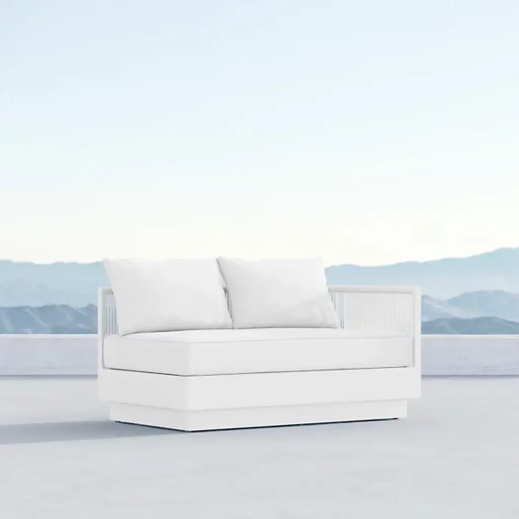 Add comfort and style to your outdoor setup with the Porto Outdoor Arm Sofa from Azzurro Living. Its bold, modern design features soft chenille performance fabric and plush, high-density cushions for lasting relaxation. The pearl gray all-weather rope offers durability you can count on, season after season. Designed to pair perfectly with other Porto pieces, this sofa facilitates the creation of a customized sectional that’s as functional as it is sophisticated.