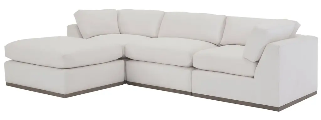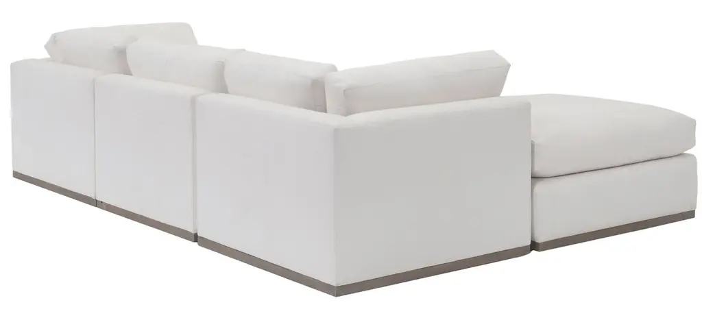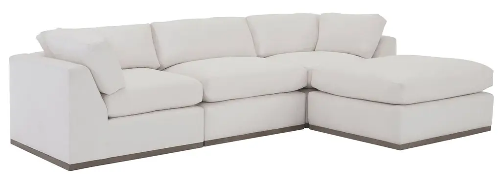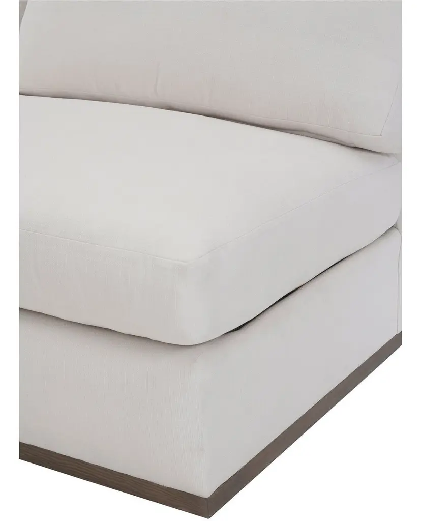 Designed by us and available only at One Kings Lane: Framed in reclaimed alder with a boxy, clean-lined silhouette, this modular sectional is sure to impress guests and promote laid-back lounging. Each piece is upholstered in Crypton--an eco-friendly high-performance fabric that repels stains, spills, bacteria, and mold--with a generous fill of foam wrapped with Dacron and Trillium ensures long-lasting comfort and support. A recessed alder plinth anchors each module with a touch of natural contrast. We love how this versatile sectional can be reconfigured to fit your space.