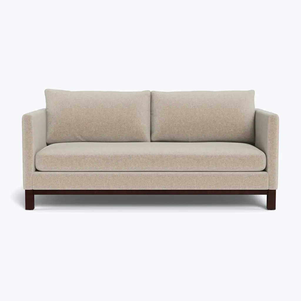 The Prescott Apartment Sofa, exclusively available online from ABC Carpet & Home, combines modern style with sustainable craftsmanship, offering an ideal solution for smaller living spaces. With its compact size and sleek, clean lines, this apartment sofa delivers chic, lasting appeal, making it perfect for cozy apartments, lofts, or smaller rooms that still require a touch of elegance. Its timeless design ensures that the Prescott Apartment Sofa will blend seamlessly into any décor, providing both comfort and sophistication. Crafted with a sustainably sourced Goodwood frame, this apartment sofa is designed for durability and longevity. The cushion core, made from eco-friendly foam derived from sustainable, plant-based materials, is wrapped in a soft blend of feather and down, providing superior comfort and support. The thoughtful combination of materials ensures this sofa is as comfortable as it is stylish, allowing you to relax and unwind in your space. With over 80+ customizable fabric options—including luxurious cottons, soft linens, durable blends, and high-performance fabrics—the Prescott Apartment Sofa can be tailored to reflect your personal style. Whether you lean toward classic neutrals or prefer bolder textures and patterns, you can create a sofa that perfectly complements your home’s aesthetic. Once you've made your selection, the sofa is expertly handcrafted and delivered within 8-10 weeks, offering a stress-free process from start to finish. Although an online exclusive, the Prescott Apartment Sofa's exceptional craftsmanship and attention to detail provide the confidence needed for online purchases. Each element, from the sustainably sourced materials to the eco-friendly cushioning, reflects ABC Carpet & Home’s dedication to quality and comfort. This sofa is not only a stunning addition to your home but also an investment in eco-conscious living. The Prescott collection also includes an 88" sofa, a lounge chair, an ottoman, and a two-piece daybed sectional, offering versatile options to create a cohesive and stylish living space. Whether you're furnishing a smaller apartment or designing a cozy living area, the Prescott Apartment Sofa brings modern elegance and lasting comfort to your home.