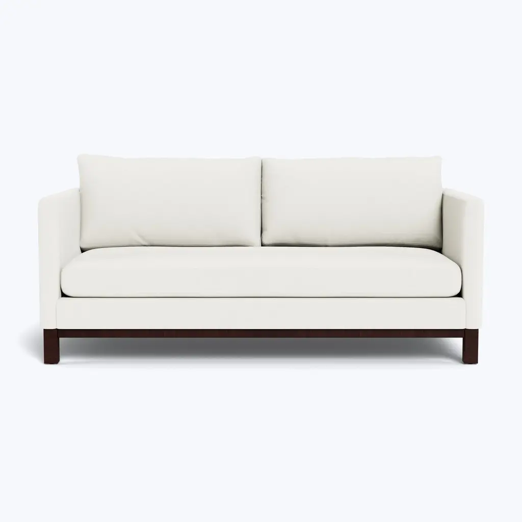The Prescott Apartment Sofa, exclusively available online from ABC Carpet & Home, combines modern style with sustainable craftsmanship, offering an ideal solution for smaller living spaces. With its compact size and sleek, clean lines, this apartment sofa delivers chic, lasting appeal, making it perfect for cozy apartments, lofts, or smaller rooms that still require a touch of elegance. Its timeless design ensures that the Prescott Apartment Sofa will blend seamlessly into any décor, providing both comfort and sophistication. Crafted with a sustainably sourced Goodwood frame, this apartment sofa is designed for durability and longevity. The cushion core, made from eco-friendly foam derived from sustainable, plant-based materials, is wrapped in a soft blend of feather and down, providing superior comfort and support. The thoughtful combination of materials ensures this sofa is as comfortable as it is stylish, allowing you to relax and unwind in your space. With over 80+ customizable fabric options—including luxurious cottons, soft linens, durable blends, and high-performance fabrics—the Prescott Apartment Sofa can be tailored to reflect your personal style. Whether you lean toward classic neutrals or prefer bolder textures and patterns, you can create a sofa that perfectly complements your home’s aesthetic. Once you've made your selection, the sofa is expertly handcrafted and delivered within 8-10 weeks, offering a stress-free process from start to finish. Although an online exclusive, the Prescott Apartment Sofa's exceptional craftsmanship and attention to detail provide the confidence needed for online purchases. Each element, from the sustainably sourced materials to the eco-friendly cushioning, reflects ABC Carpet & Home’s dedication to quality and comfort. This sofa is not only a stunning addition to your home but also an investment in eco-conscious living. The Prescott collection also includes an 88" sofa, a lounge chair, an ottoman, and a two-piece daybed sectional, offering versatile options to create a cohesive and stylish living space. Whether you're furnishing a smaller apartment or designing a cozy living area, the Prescott Apartment Sofa brings modern elegance and lasting comfort to your home.
