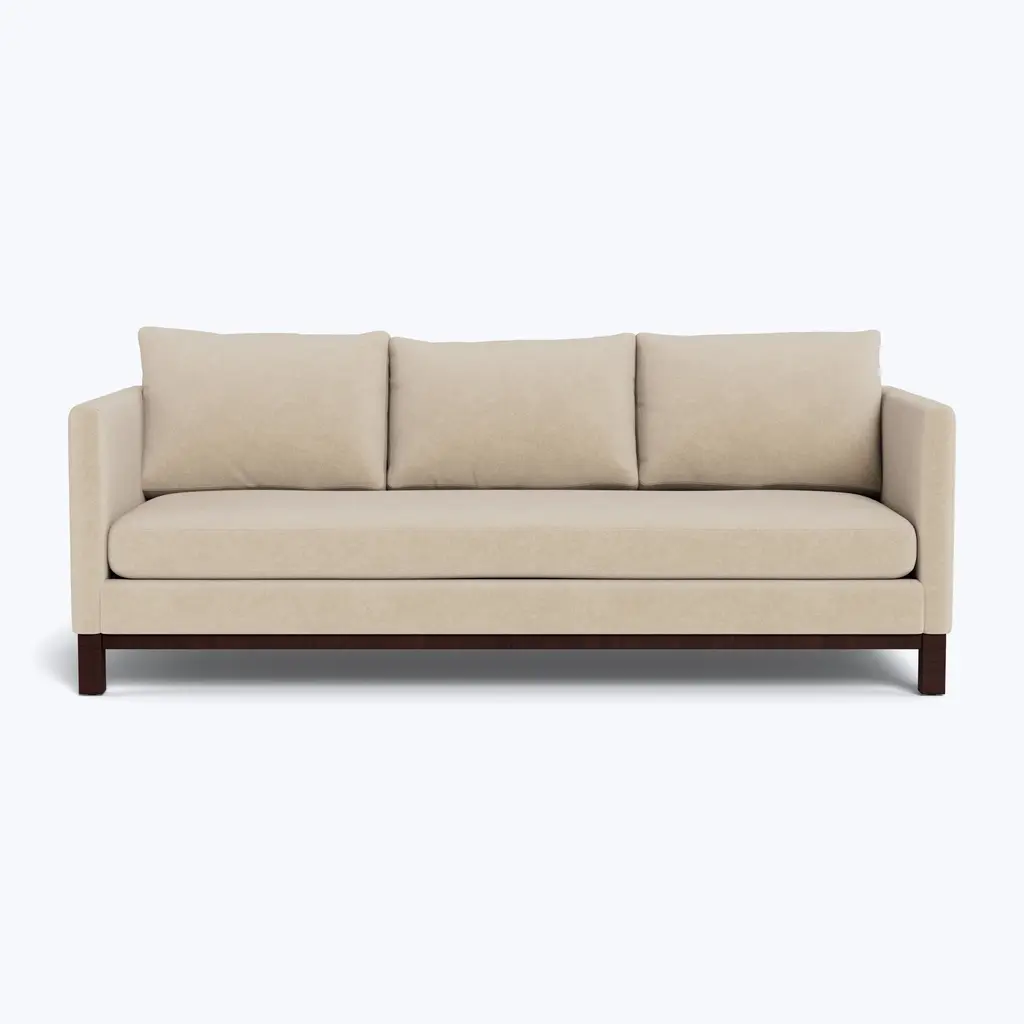 The Prescott Sofa, an exclusive online offering from ABC Carpet & Home, combines the finest craftsmanship with eco-conscious design, making it the perfect choice for those seeking modern, sustainable luxury. Measuring 88 inches, this sofa showcases clean lines, a chic aesthetic, and everlasting appeal, making it a timeless addition to any home. With a sleek bench seat and a not-too-deep profile, the Prescott Sofa is designed to fit effortlessly into various living spaces, from cozy apartments to expansive living rooms. Crafted with a sustainably sourced Goodwood frame, the Prescott Sofa ensures durability and longevity, giving you the confidence that this piece is built to last. Its cushion core, made from eco-friendly foam derived from sustainable, plant-based materials, is wrapped in a soft blend of feather and down, providing exceptional comfort. This thoughtful combination of materials ensures maximum support, making it a sofa you can sink into day after day. With over 80+ customizable fabric options—including luxurious cottons, soft linens, durable blends, and high-performance fabrics—you have the flexibility to tailor this piece to your personal style. Whether you prefer classic neutrals, bold textures, or modern patterns, you can create a sofa that perfectly complements your home’s décor. Once your custom selection is made, the Prescott Sofa will be expertly handcrafted and delivered to your door within 8-10 weeks, ensuring a seamless and stress-free process. Though an online exclusive, the Prescott Sofa's impeccable craftsmanship is designed to instill confidence. Every detail, from the sustainably sourced materials to the eco-friendly cushioning, reflects the quality and care ABC Carpet & Home is known for. This sofa is not only a beautiful, modern addition to your space but also an investment in sustainability and comfort. The Prescott collection also includes an apartment-size sofa, a lounge chair, an ottoman, and a two-piece daybed sectional, providing endless possibilities for creating a cohesive, stylish living area. Whether you’re furnishing a smaller space or designing a full living room ensemble, the Prescott collection offers versatility and modern elegance in every piece