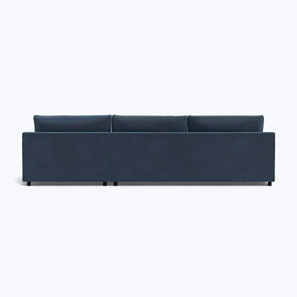 Embrace the art of relaxation with the Prescott Sectional, an exclusive offering from abc carpet & home. Available in a range of upholstered fabric options, this sectional blends comfort with contemporary design in the heart of your home. Additionally, choose between left and right facing styles to ensure you find the perfect fit for your space. The Prescott Collection is distinguished by its blend-down cushions, a mix of dense foam and feather down that is carefully washed to meet hypoallergenic regulations. Crafted with a sustainably sourced Goodwood frame, this sectional is not only aesthetically pleasing but also eco-conscious, offering peace of mind as you create lasting memories at home. Customize your Prescott Sectional with Cobble Hill's wide range of color and fabric combinations, offering more than 80 options to suit your unique style and preferences. Whether it's the Crypton Performance Linen or Kelley Performance Velvet, rest assured that each option is durable and easy to clean. Simply select your dream color and fabric scheme, and your custom sectional will be shipped to your home in 8-10 weeks. Measuring 116 inches in width, 36 inches in height, and 78 inches in depth, this sectional perfectly complements other pieces from the Prescott Collection, allowing you to create a personalized ensemble that is tailored to your space. Proudly made in the USA, each piece in the Cobble Hill collection reflects a commitment to quality craftsmanship and ethical manufacturing practices. Maintaining the pristine condition of your sectional is effortless with simple care instructions. Spot clean with mild detergent and vacuum frequently to keep it looking fresh. For a deeper clean, professional services are recommended. With seat cushions wrapped in a blend of 75% fiber and 25% feather/down, and back cushions featuring a fiber and feather blend encased in a channeled down-proof casing, rest assured, every detail of the Prescott Sectional is designed with your comfort and satisfaction in mind. Elevate every moment and make memories that last a lifetime with the Prescott Sectional from Cobble Hill.